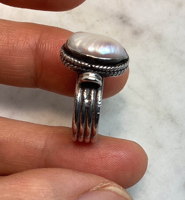 Vintage Sterling Silver Fresh Pearl Ring Size 6