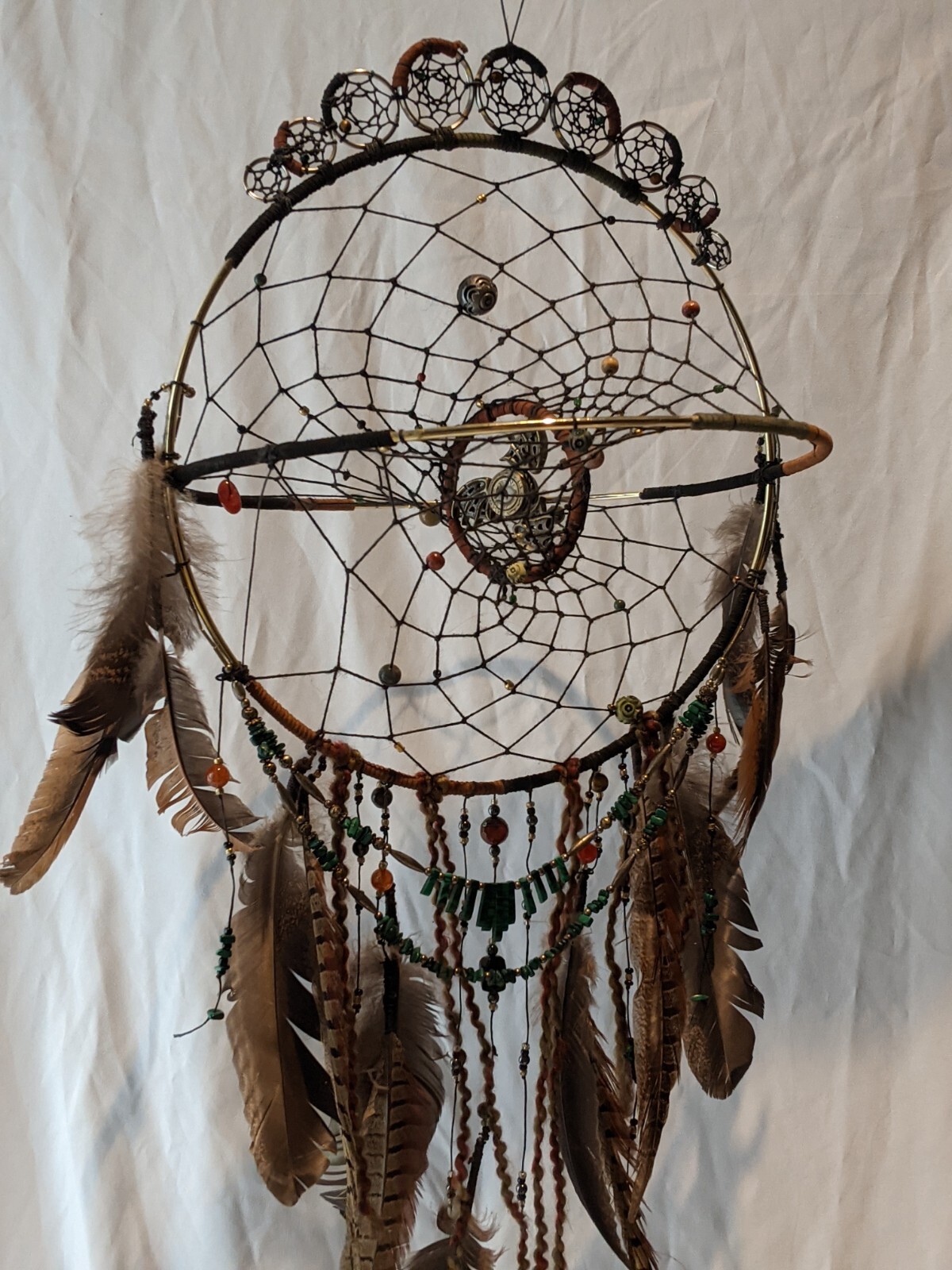 • Large Intercepting Dreamcatcher Dream Catcher Brown Feathers Green Malachite