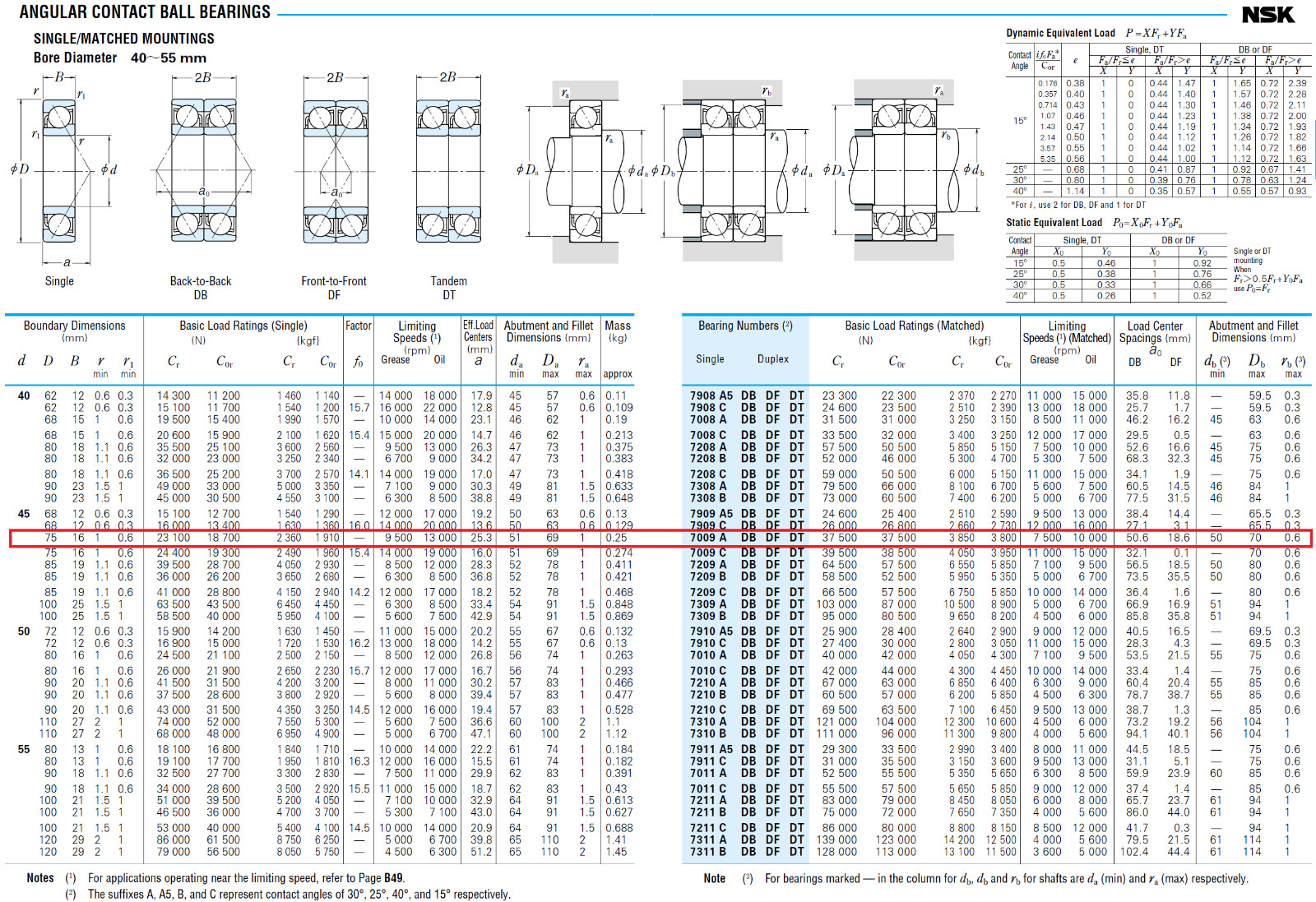 NSK 7009P5 7009CTYP5 1PCS 45x75x16 Single Row Angular Contact Ball Bearing
