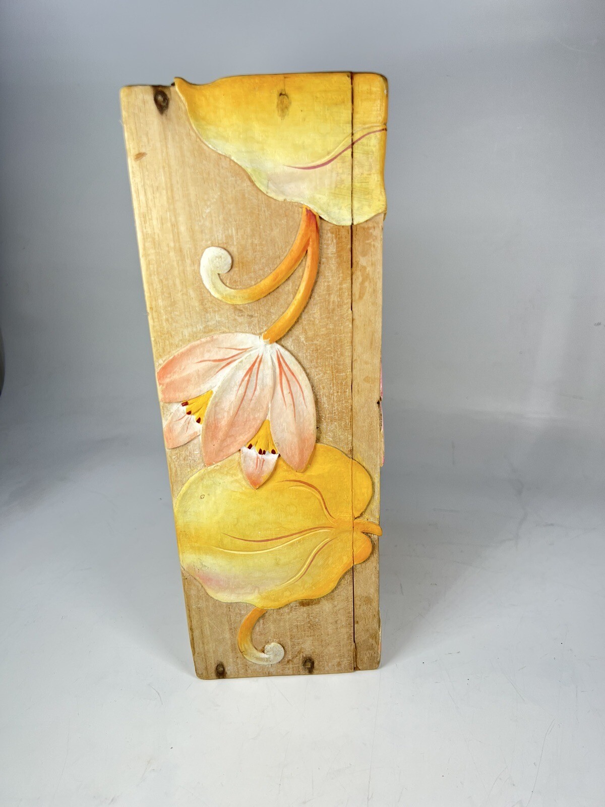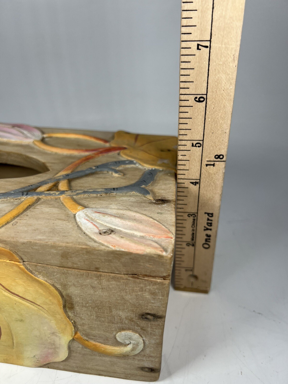 Tissue Box Hand Made Wood Carved Painted Flamingo vintage Floral Bird Tissue