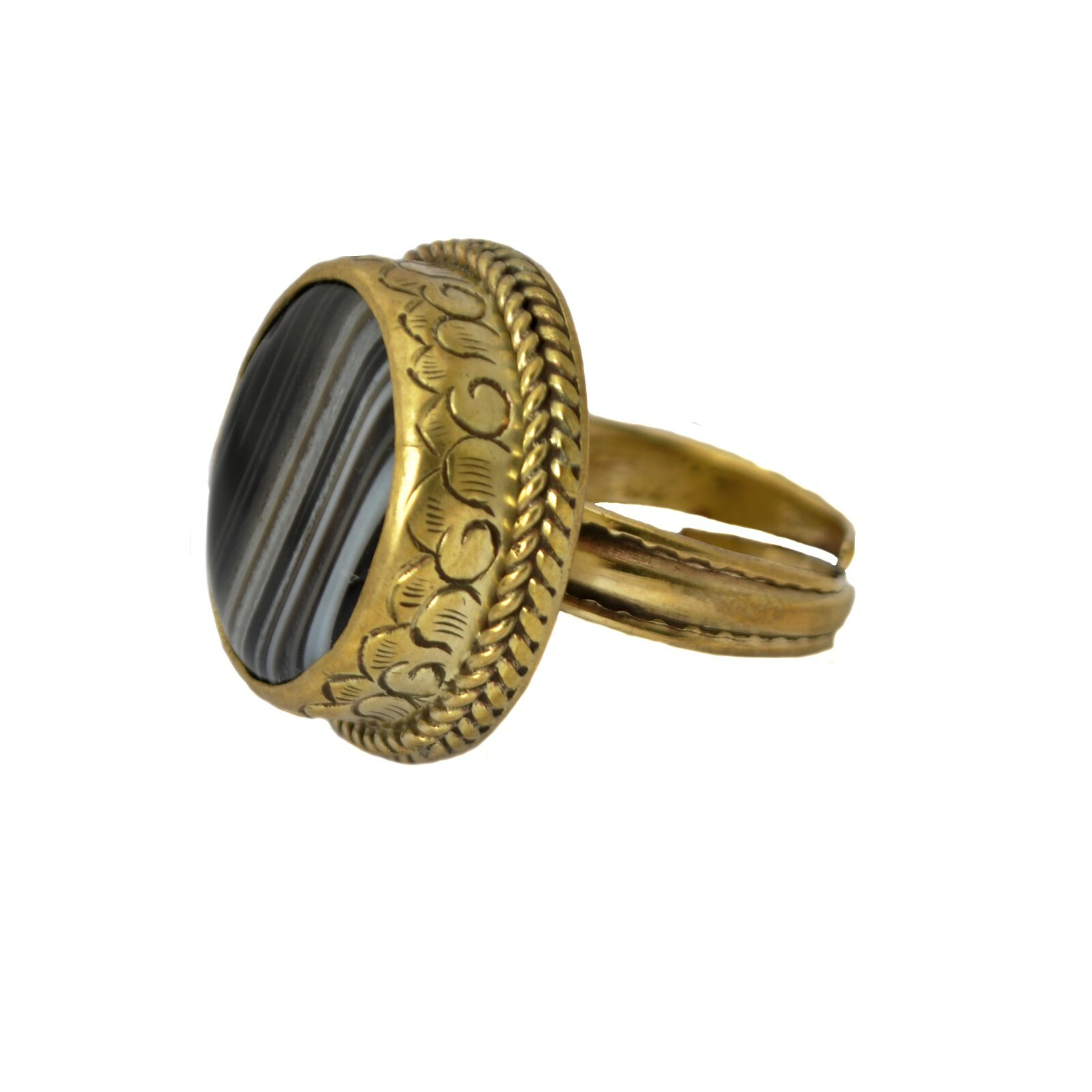 Black Agate Brass Ring 8-10 Nepalese Ethnic Tribal Handmade Nepal RG189