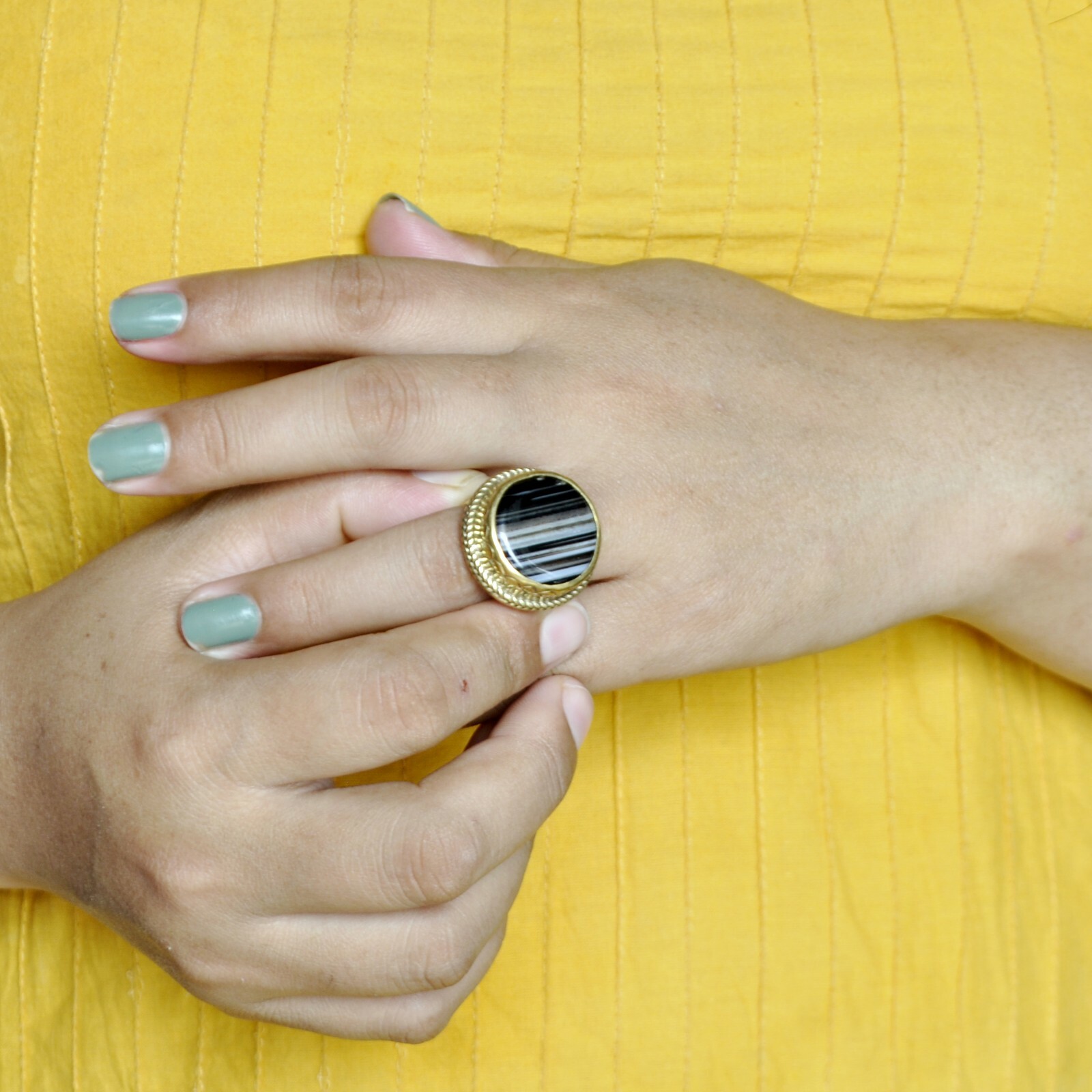 как выглядит Black Agate Brass Ring 8-10 Nepalese Ethnic Tribal Handmade Nepal RG189 фото