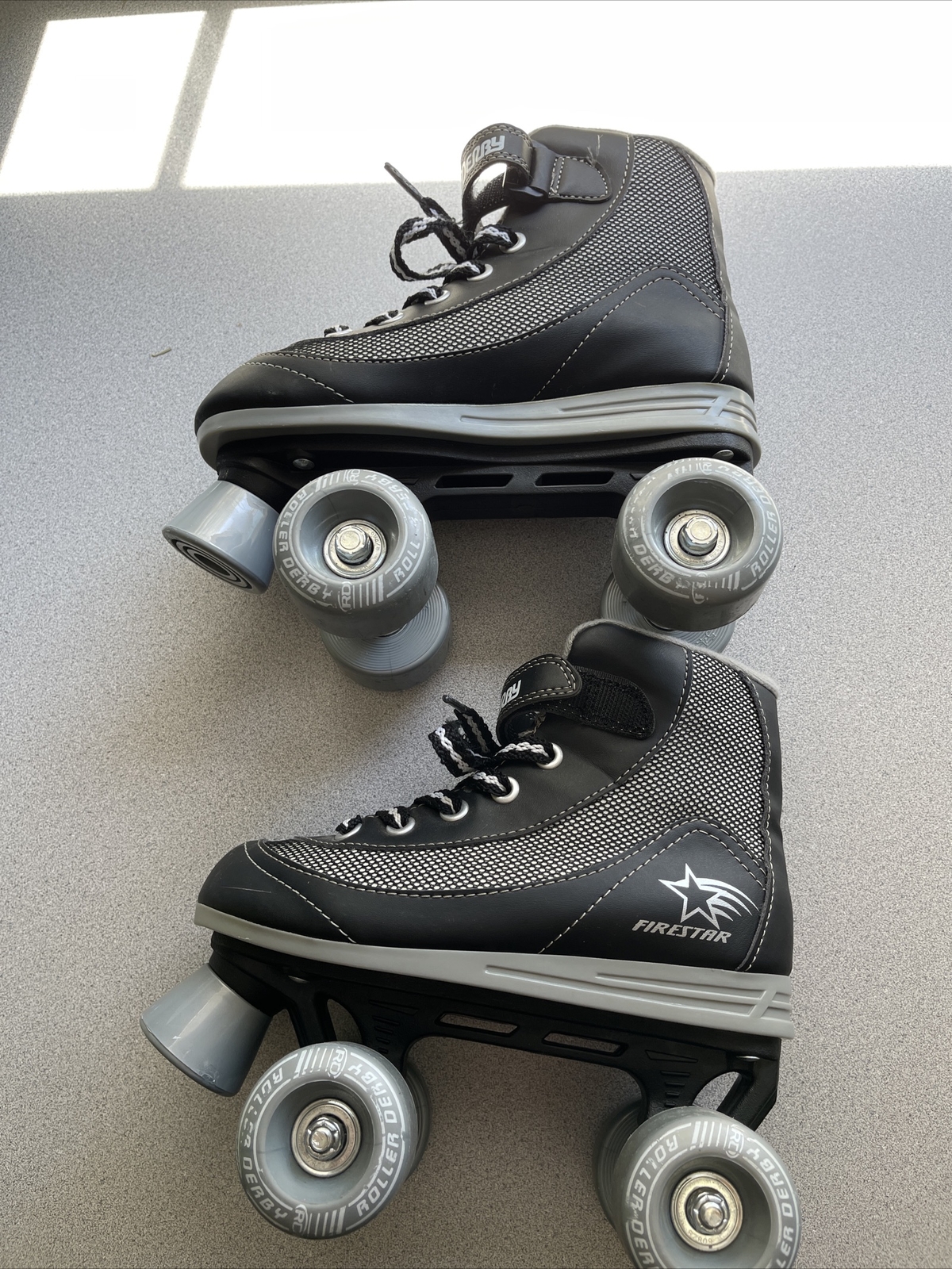 Roller Derby Skates Youth 2 Firestar Black Gray Skating Rink Stopper Unisex