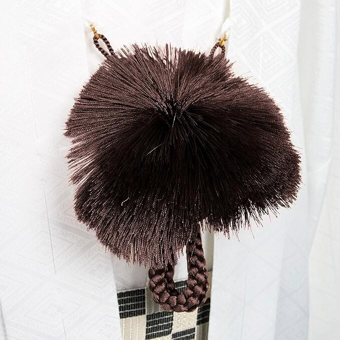 Japanese Traditional Haori Himo Belt Gray Kimono Tie for Men Bonten tassel brown
