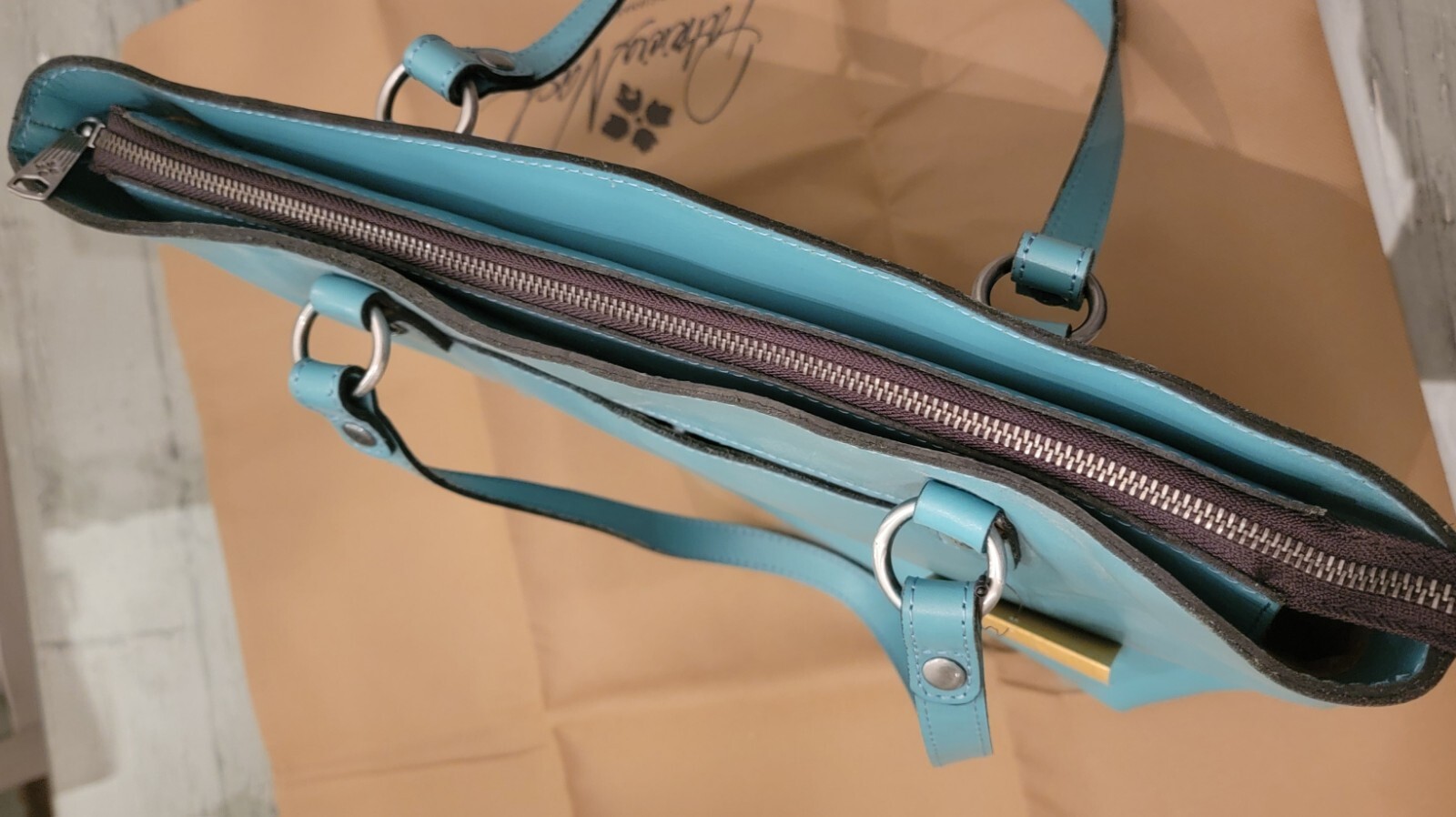 как выглядит Patricia Nash Handbag New With Tags Unique Aqua Color Leather фото