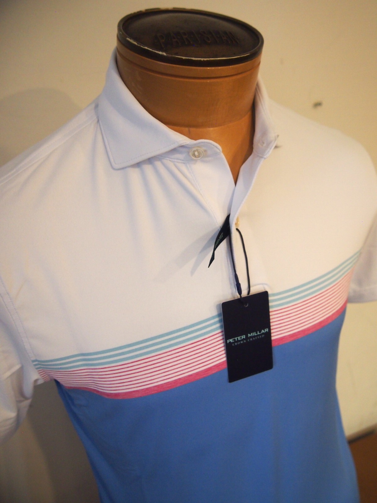 как выглядит Peter Millar Crown Crafted Performance Fabric Color Block Polo Shirt NWT XL 125 фото