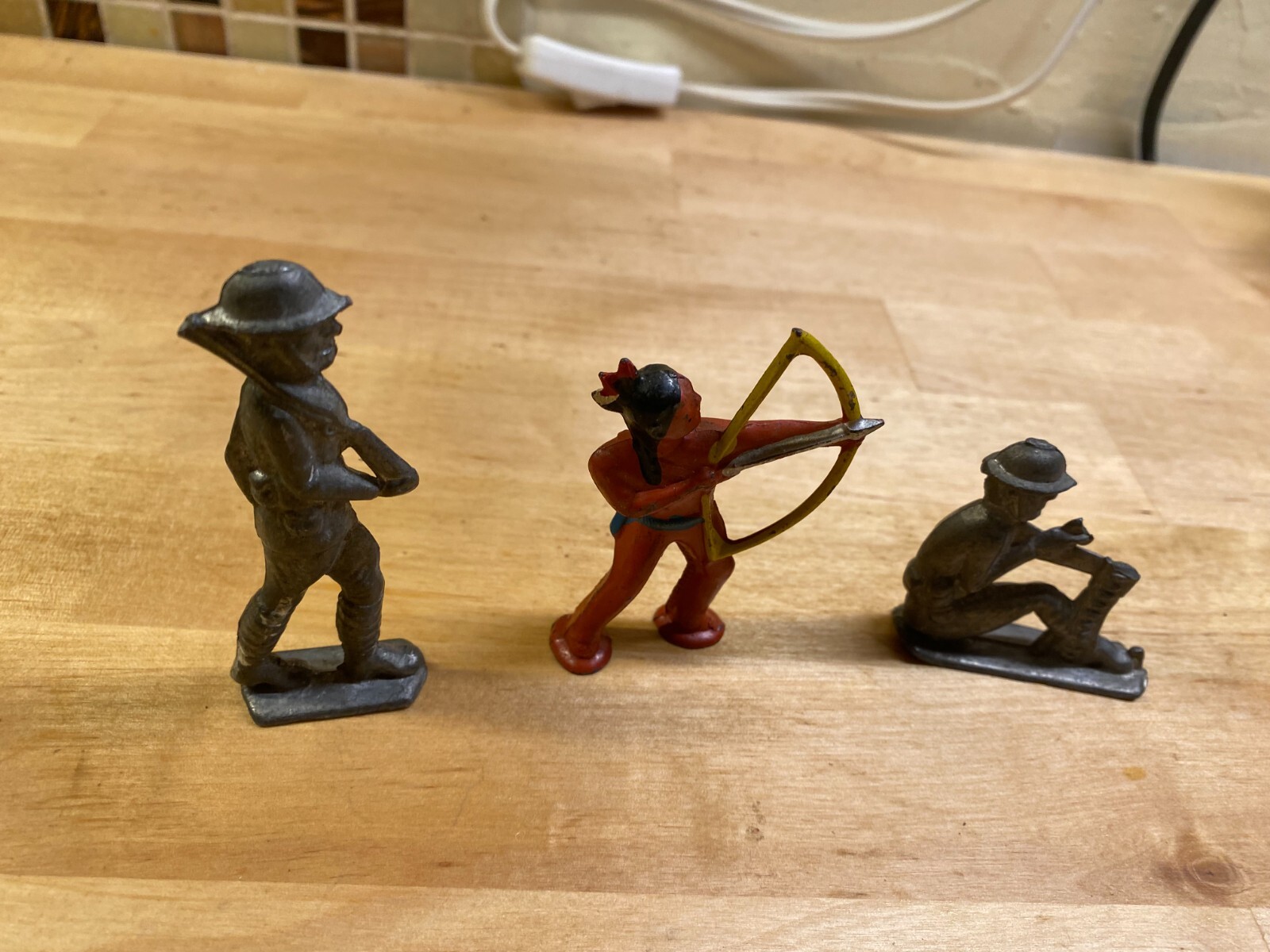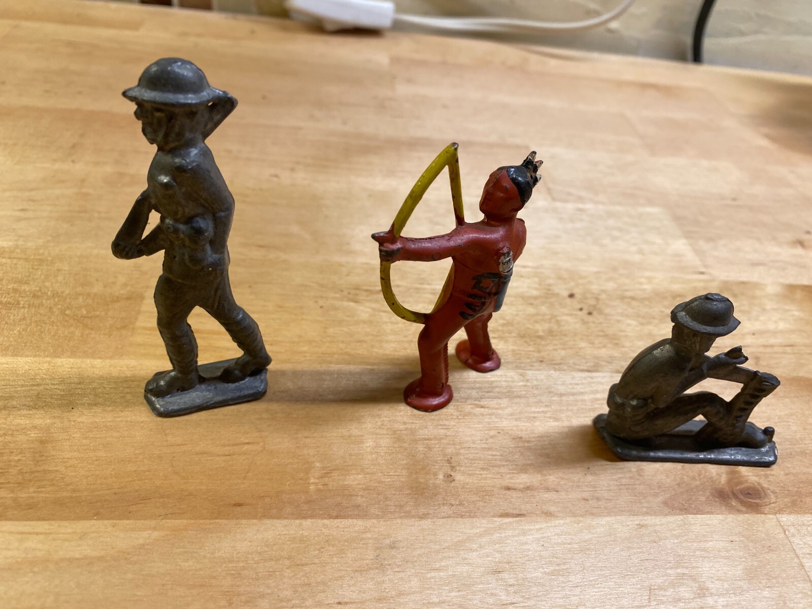 2 Toy Soldiers Lead Metal Vintage 3.25 ins 1 toy Indian