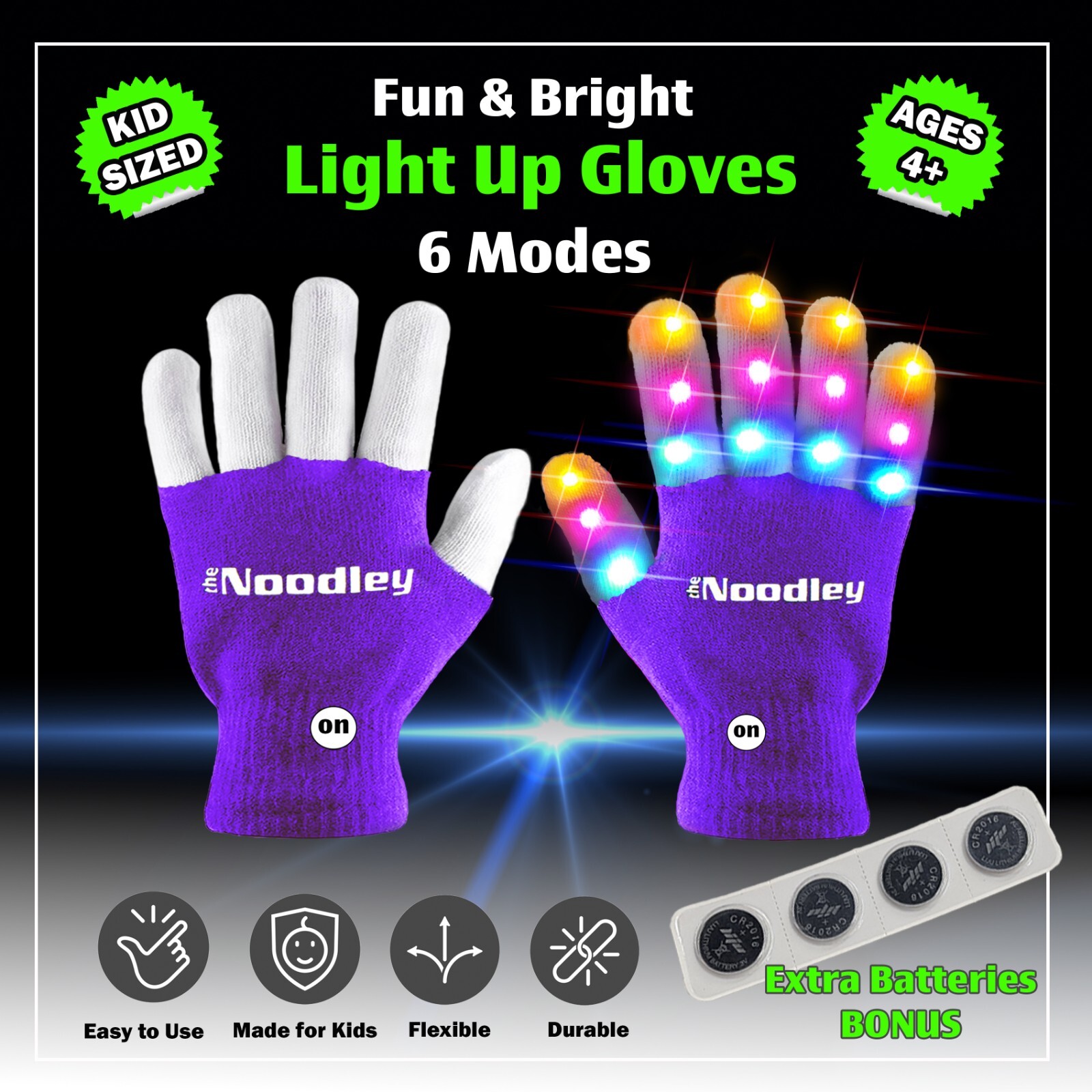 Purple Light Up Gloves Kids LED Shoelaces Set Glow Party Girl Gift Ages 4-10