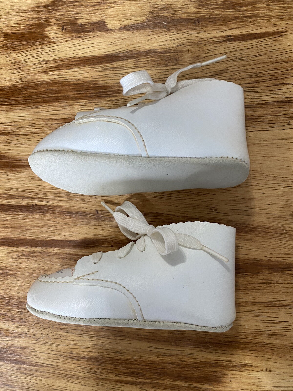 как выглядит Vintage White 90 s Baby Shoes. Embroidered Flowers Pink Blue Green Easter Yellow фото