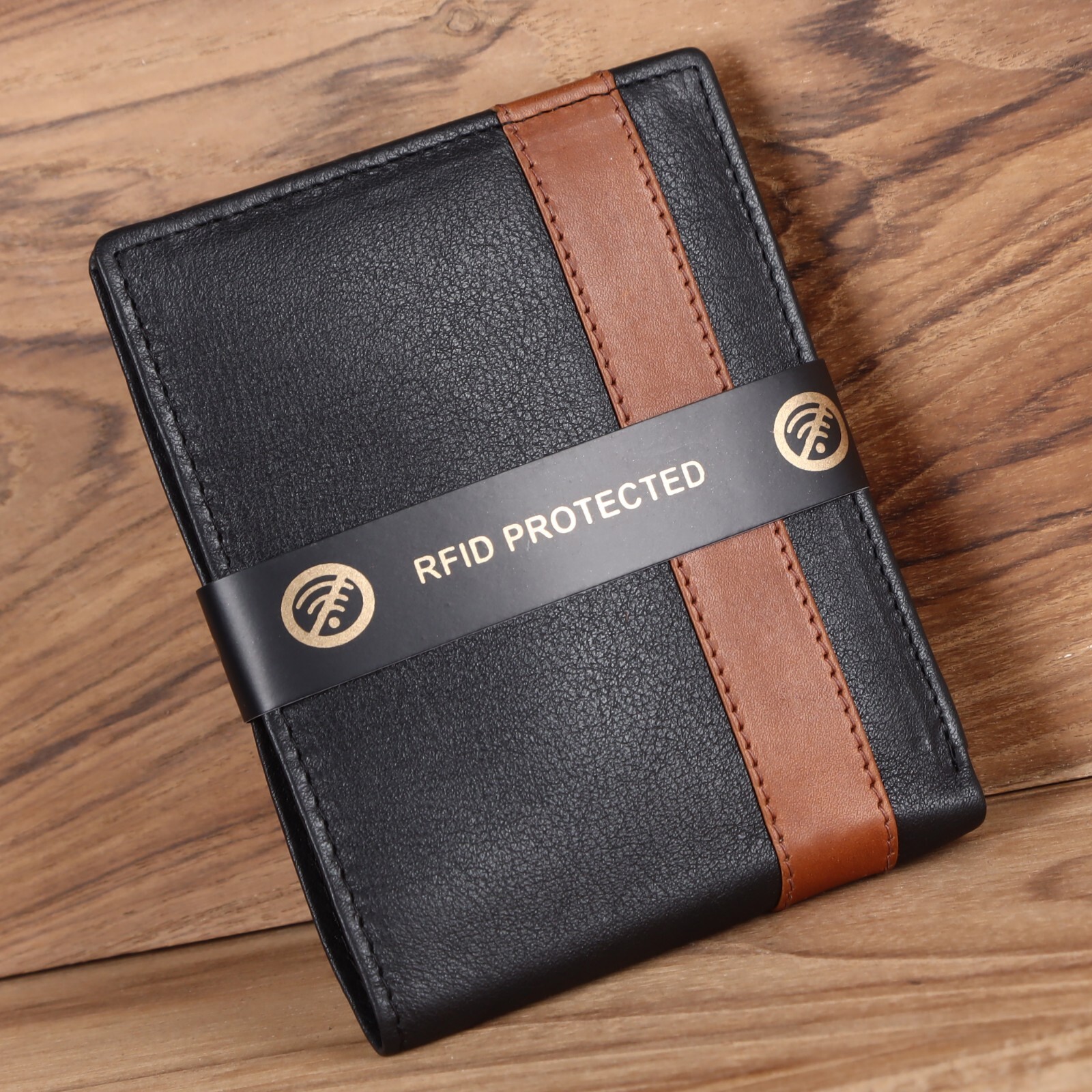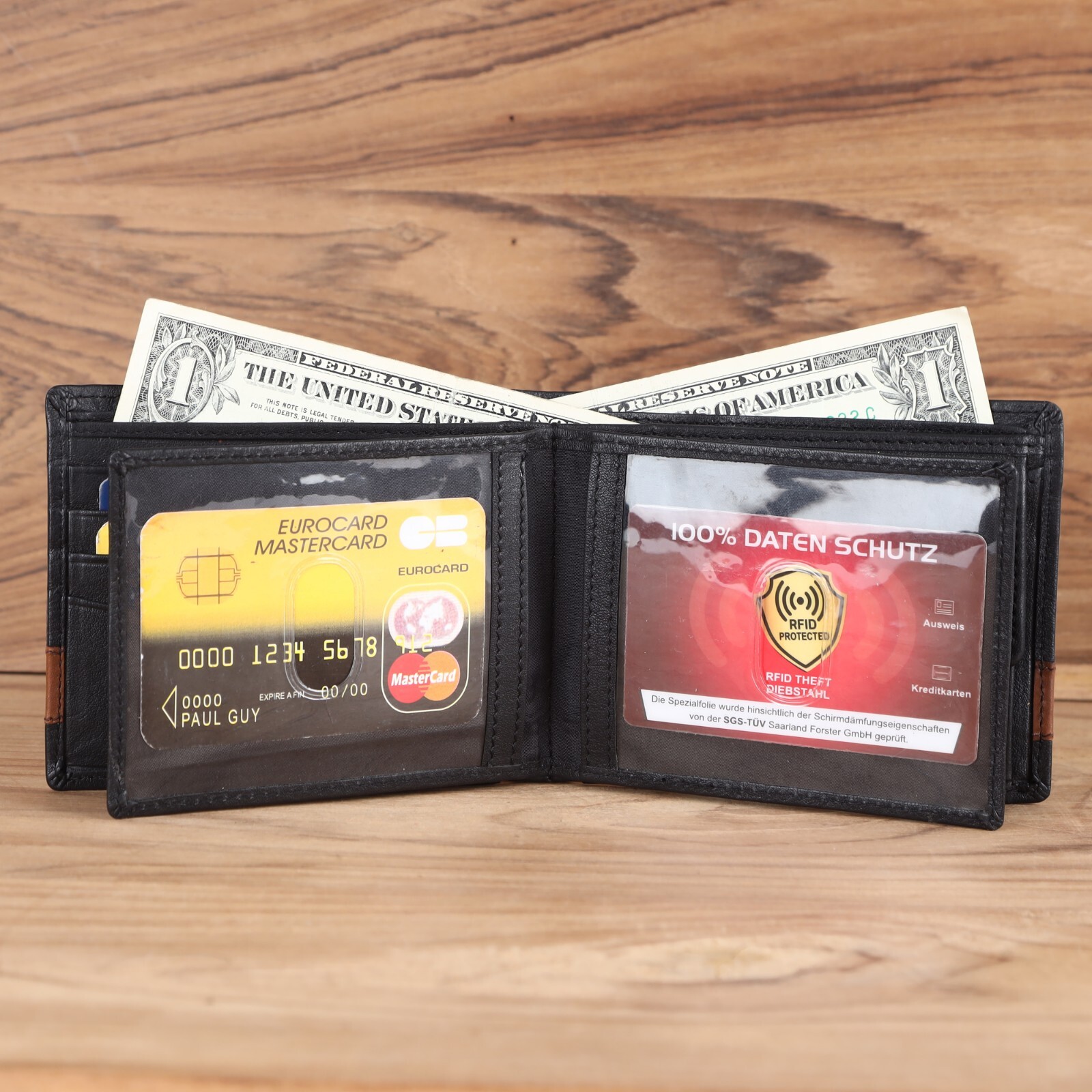 Genuine Leather Minimalist Bifold Wallets For Men RFID Blocking Slim Mens Wallet