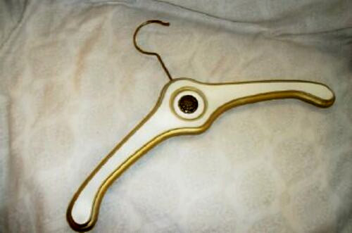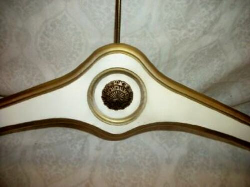 FRENCH PROVENCAL WOOD CLOTHES HANGER WHITE GOLD HOLLYWOOD REGENCY JAPAN 1960s
