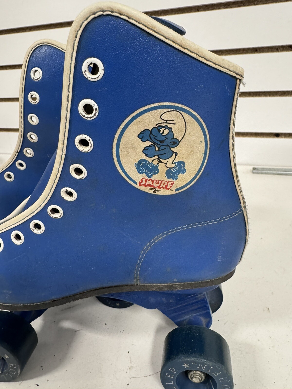 Vintage Roller Derby Skates Smurfs Youth Kids 1980's Smurf 1982 Blue SZ 1 BLHN