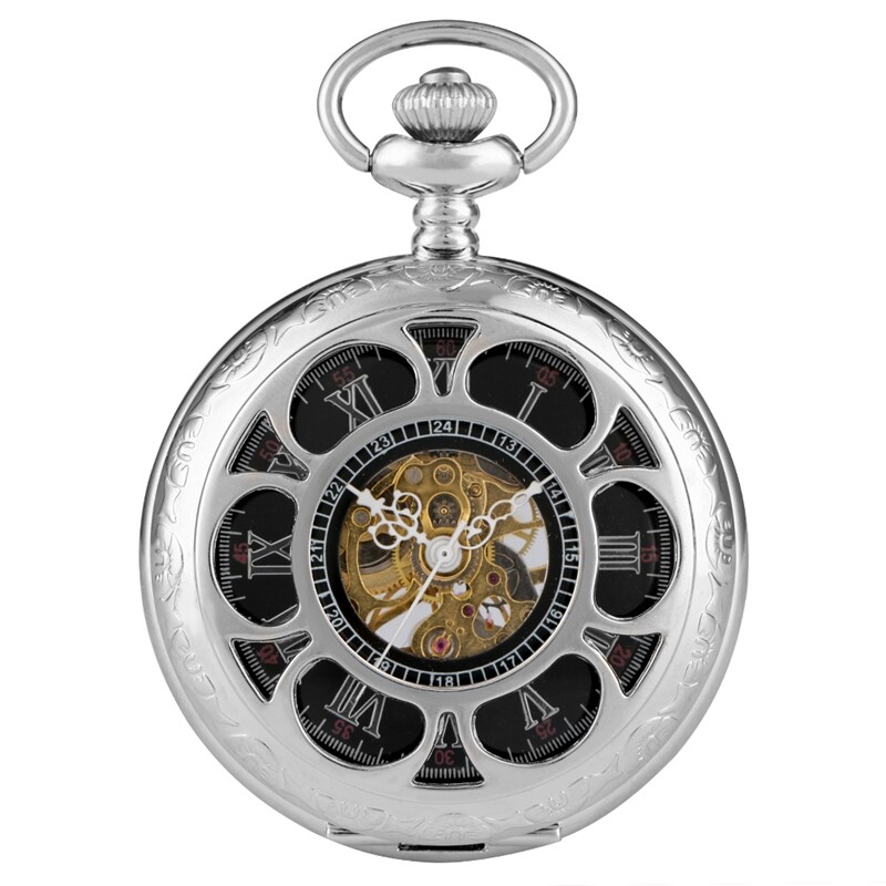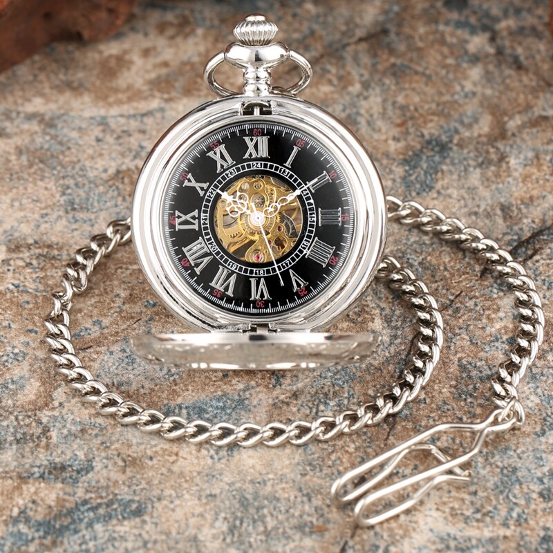 как выглядит Mens Pocket Watch with Chain Hand Wind Skeleton Mechanical Luxury Fob Watches фото