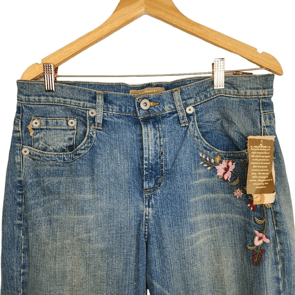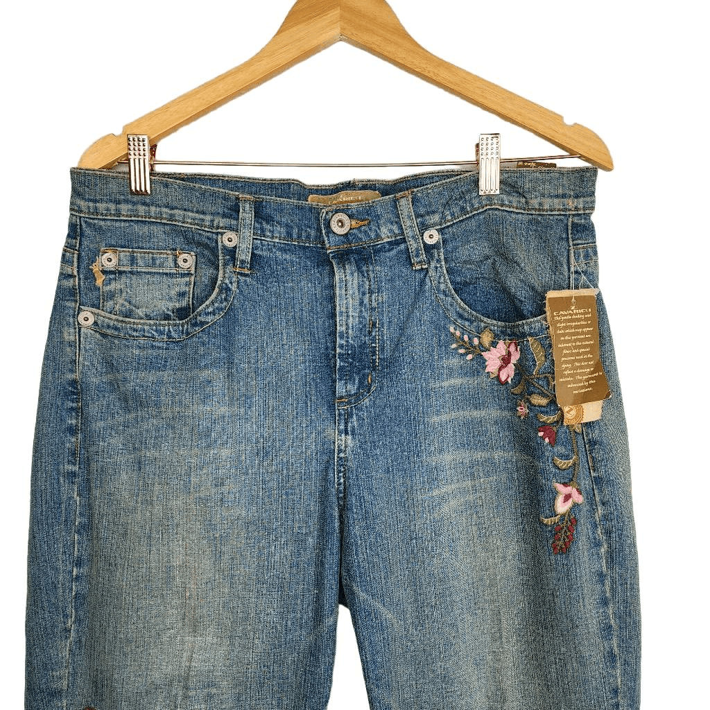 Vintage Z. Cavaricci Women's 90s Floral Embroidery Cropped Jeans Size 16
