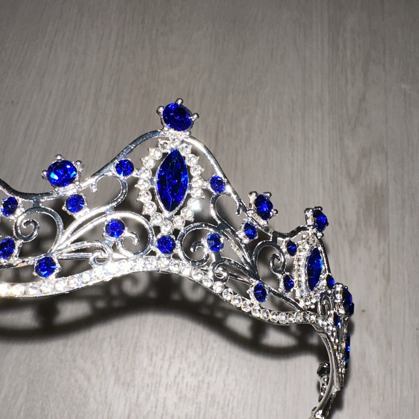 Blue Rhinestone SILVER Princess Crown Tiara for Girls Birthday Hair Accessory