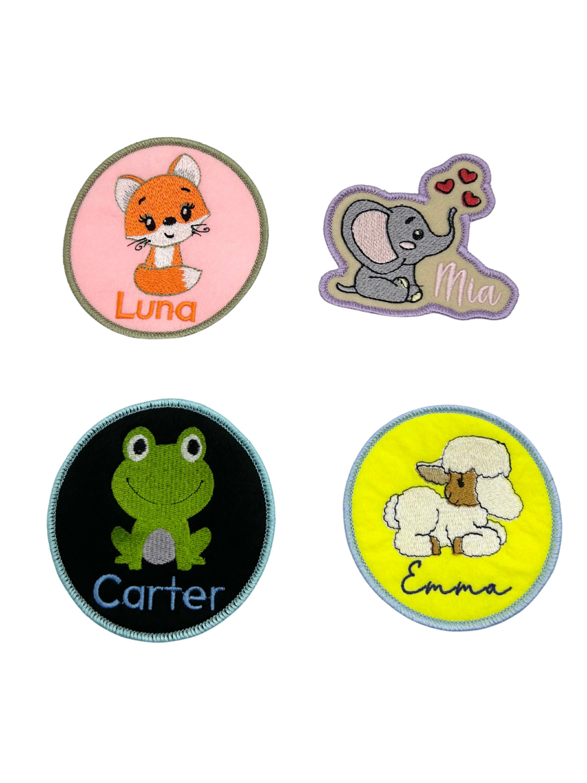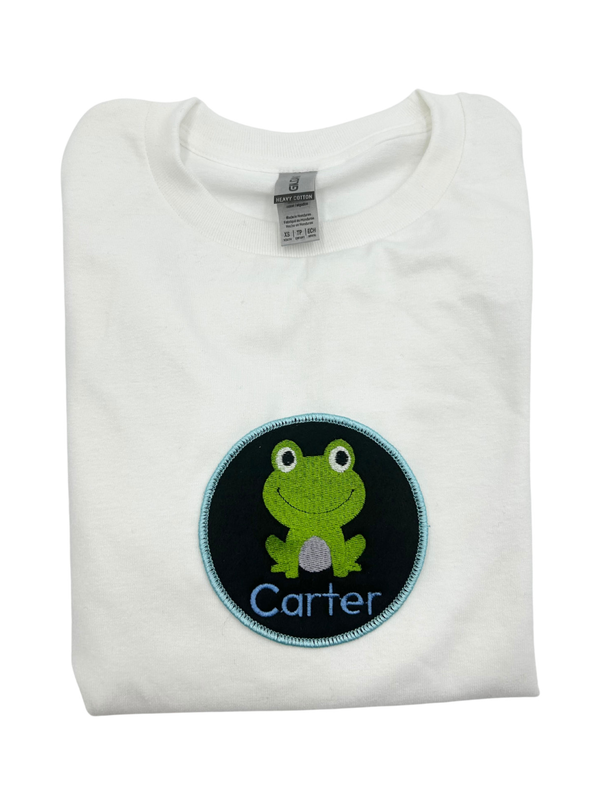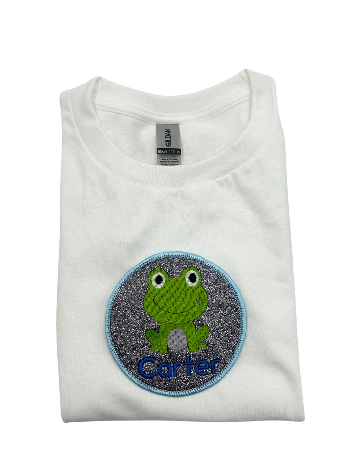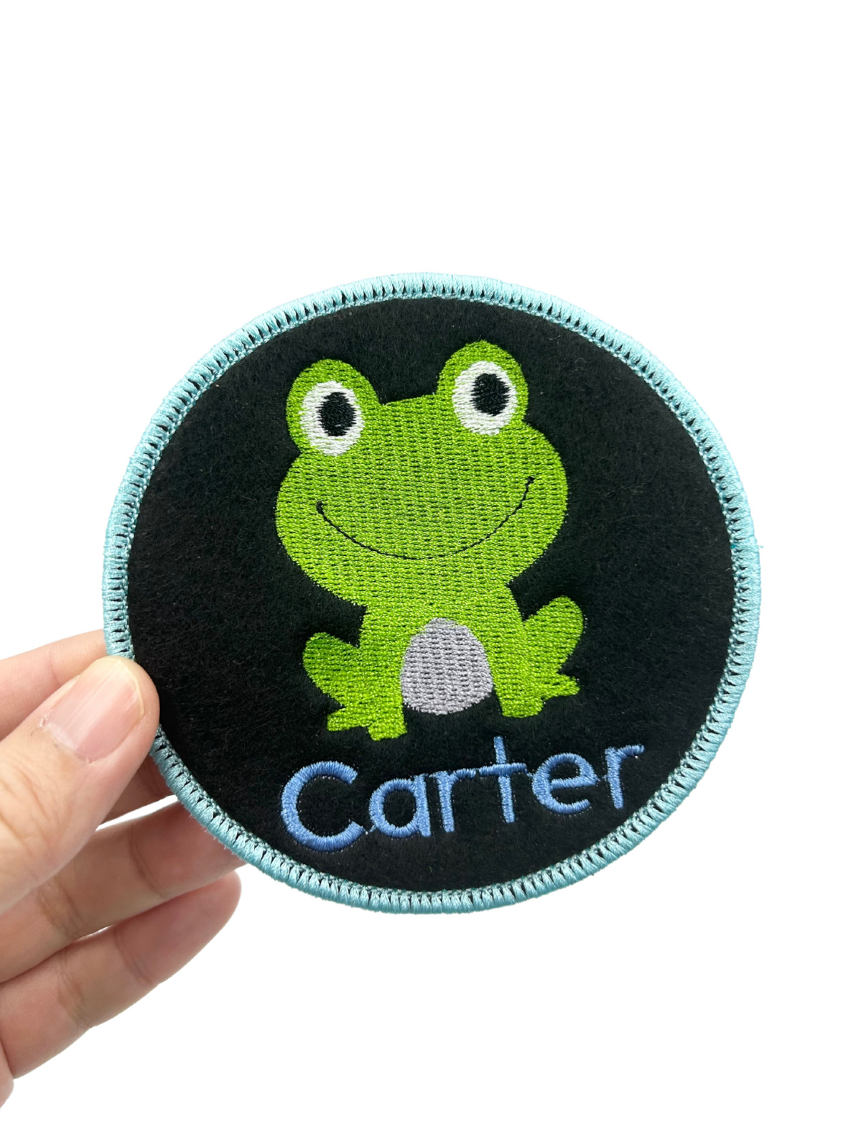 Custom Glittered Felted Iron-on Baby Frog Name Tag Patch