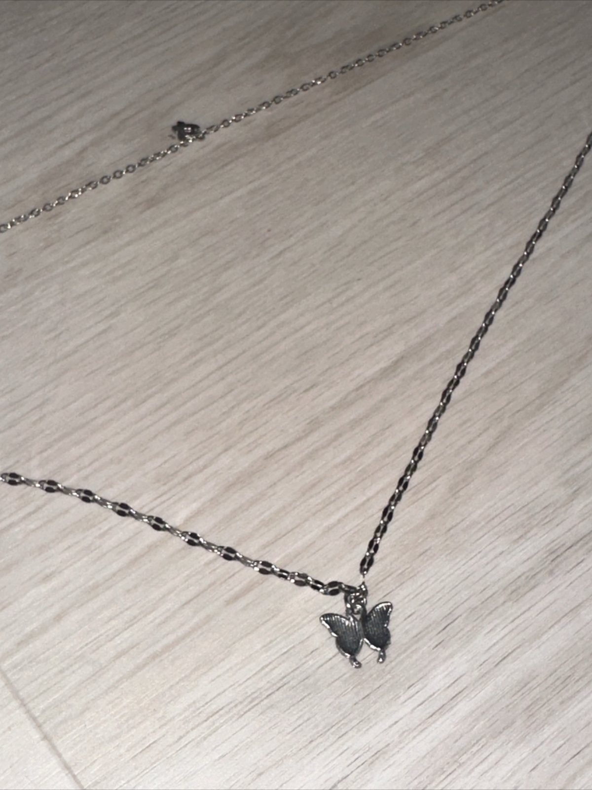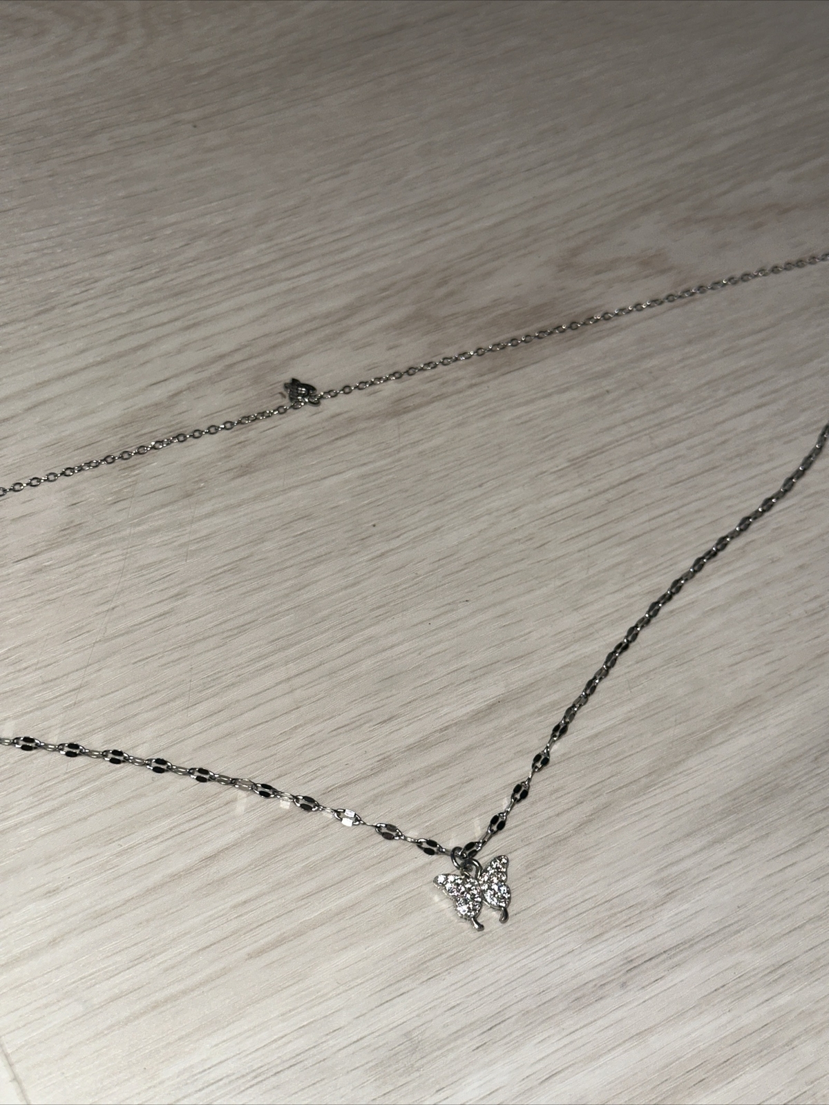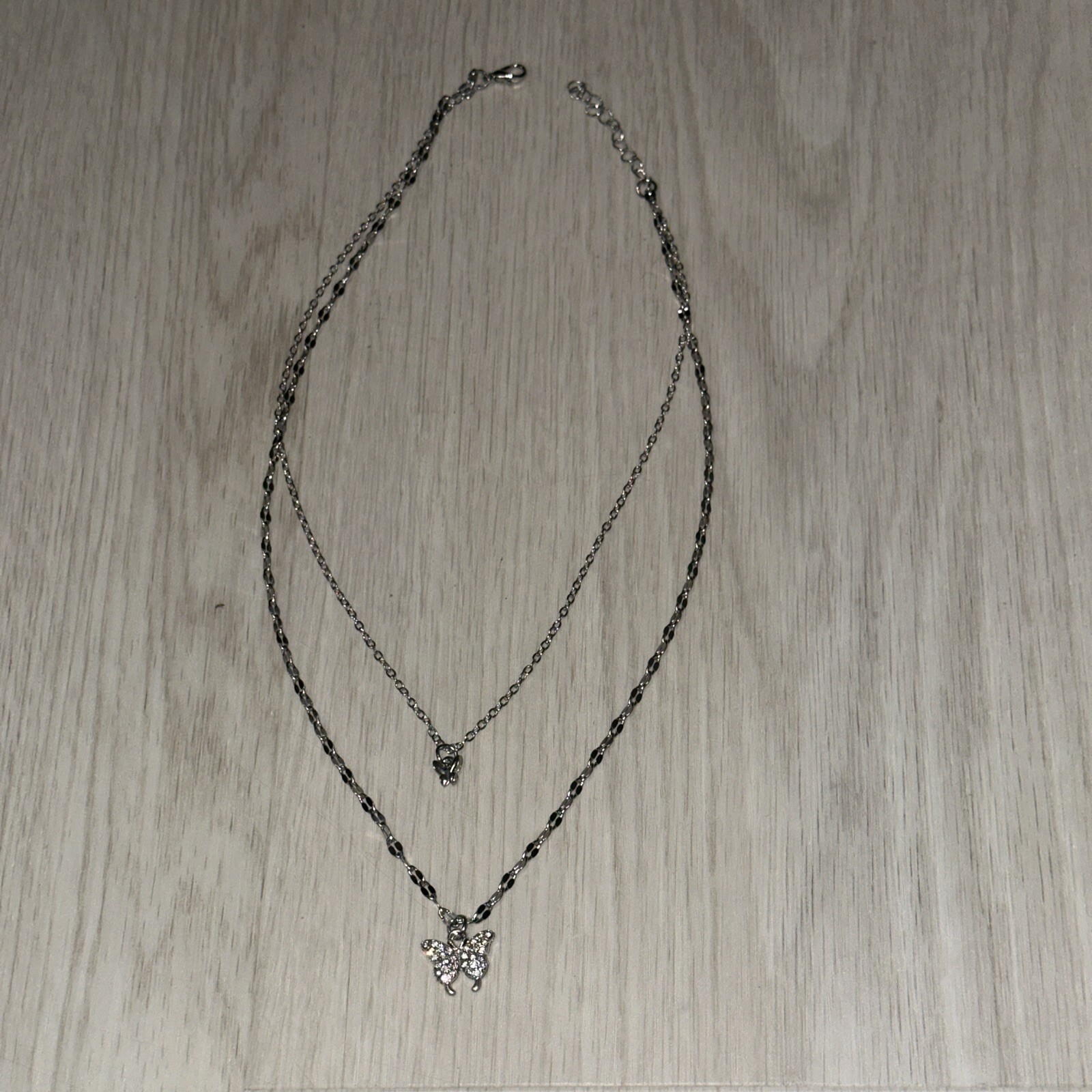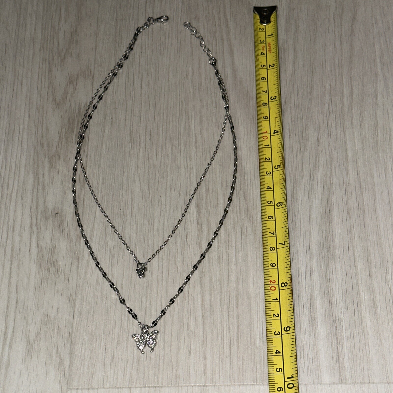 как выглядит Double Butterfly Two Chained Rhinestones Silver Tone girls Necklace фото