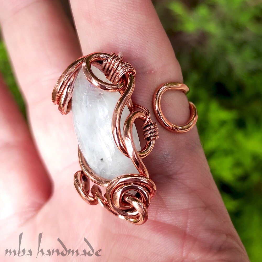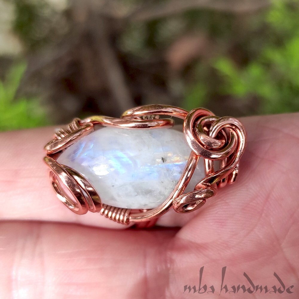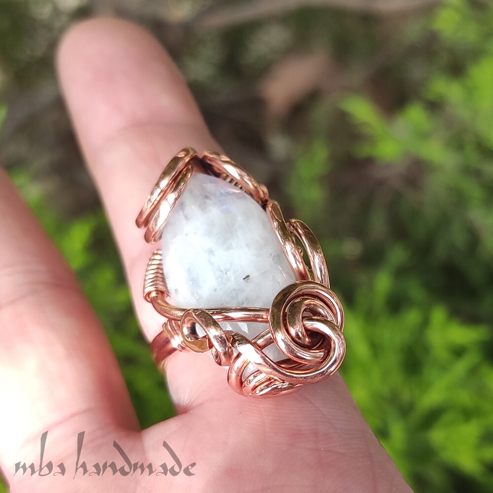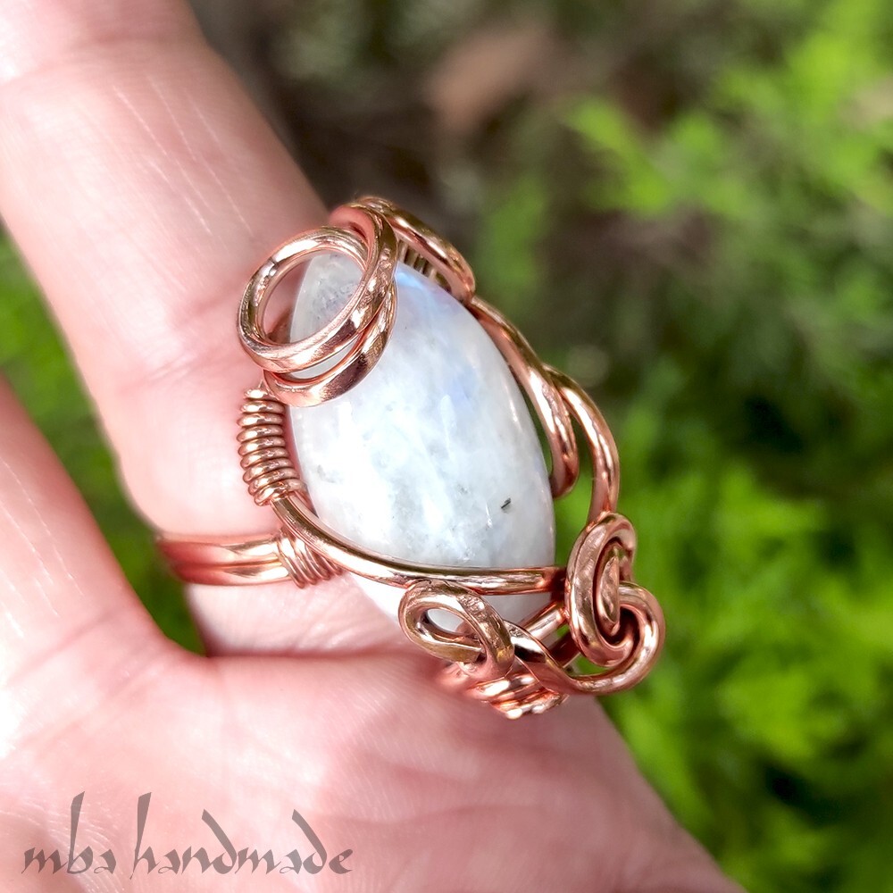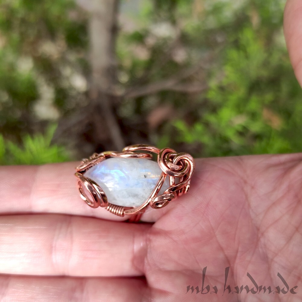 как выглядит Moonstone Crystal Size 6-7-8-9 US Adjustable Ring Pure Copper Unique Jewelry фото