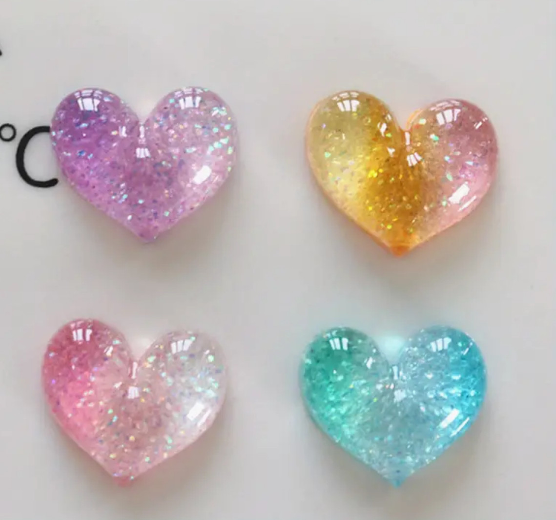 10pc Colorful Glitter Heart Shoe Charms for Crocs or Shoe Laces