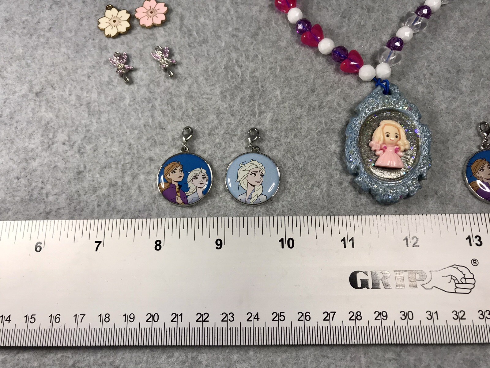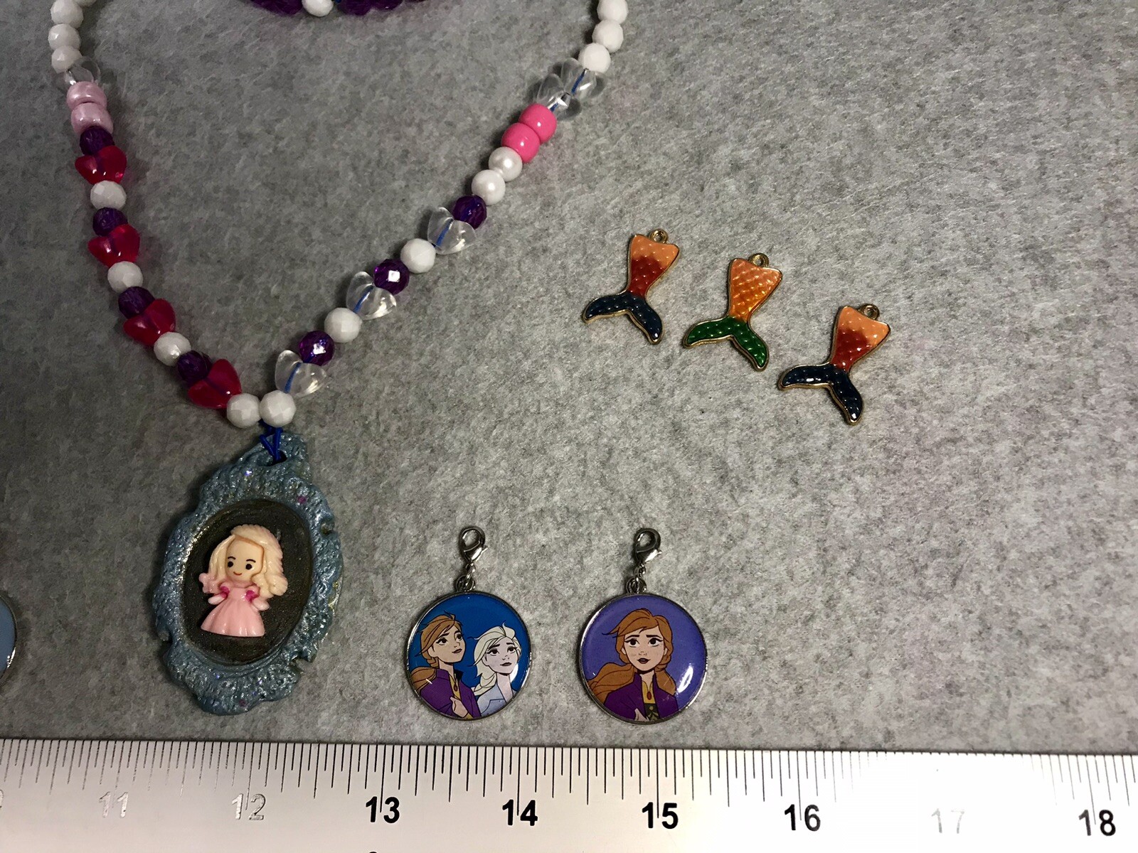 Girls Fashion Necklace Lot of 13 Assorted Pendants Disney Charms Bracelet Flower