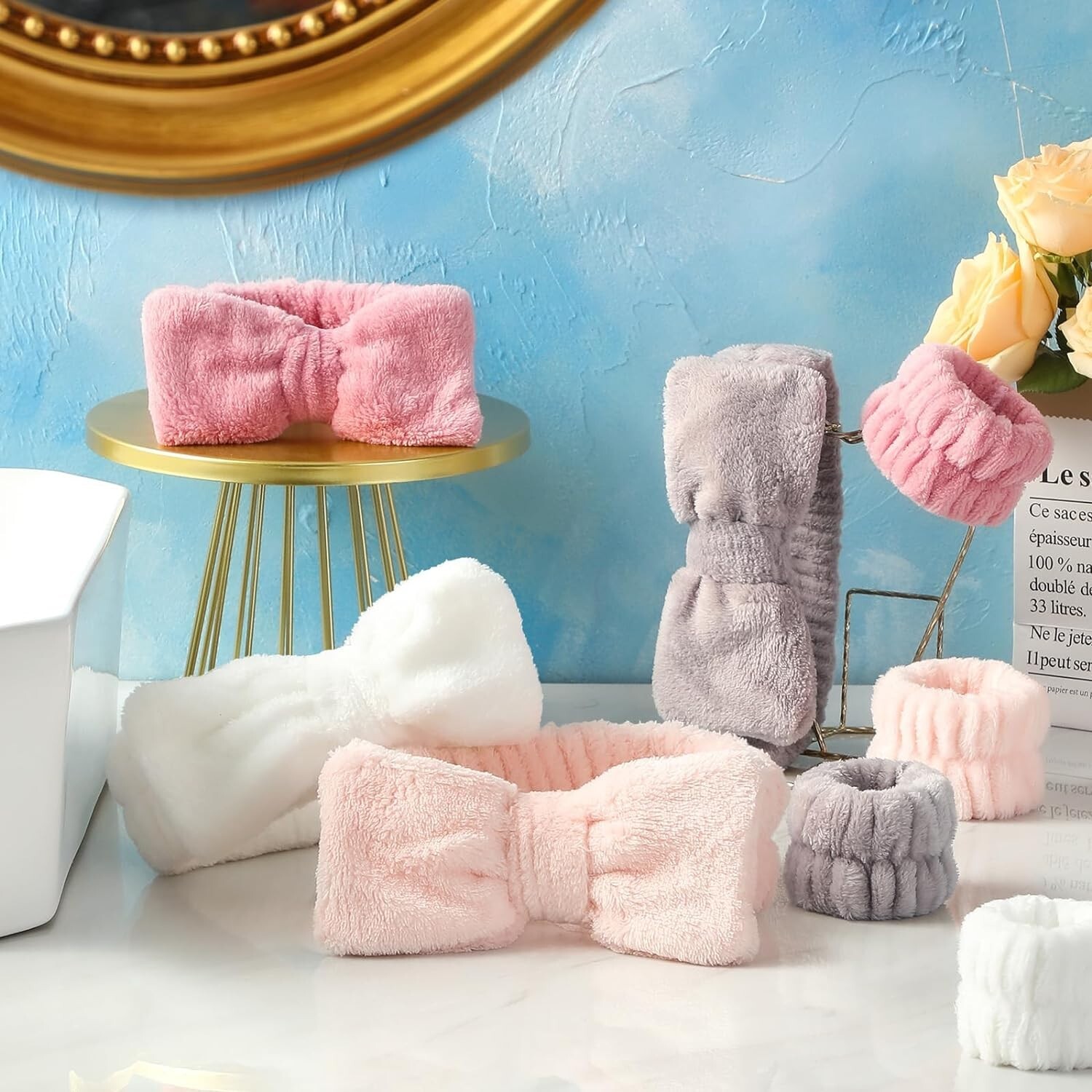 4 Pack Spa Headband for Washing Face with 8 Wristbands Girl Hair Band Microfiber