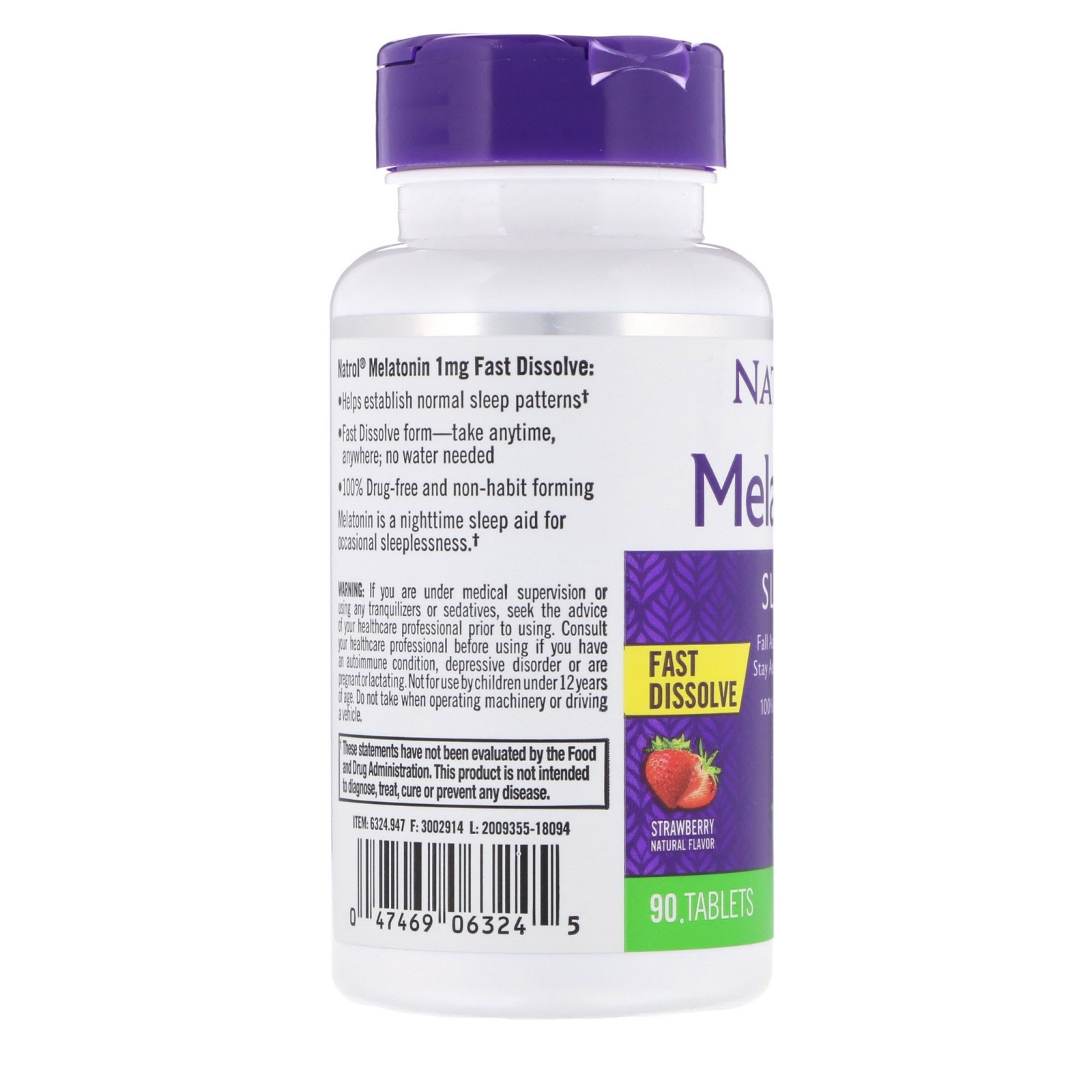 Melatonin, Fast Dissolve, Strawberry, 1 mg, 90 Tablets
