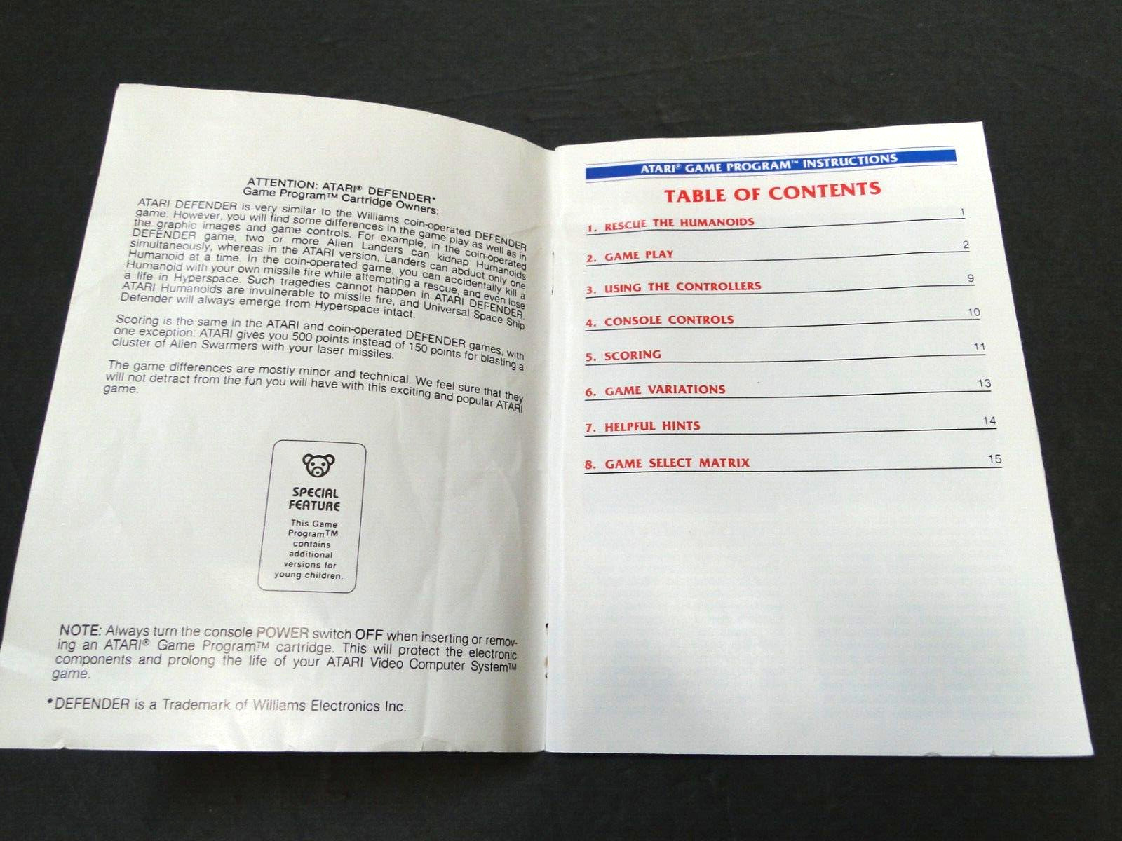 Vintage 1982 Atari: Defender Manual