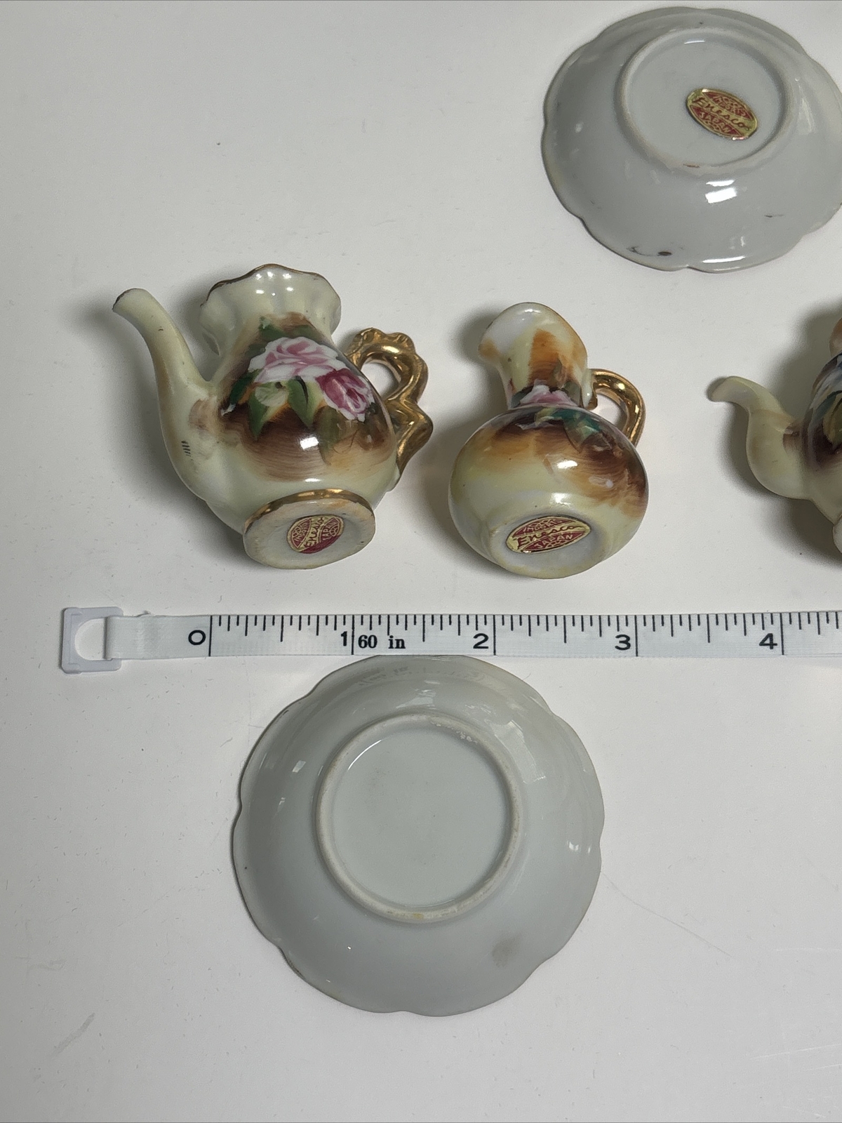 Vintage Set Of 3 Tea Minis Floral Enesco Imports Japan Miniature Porcelain