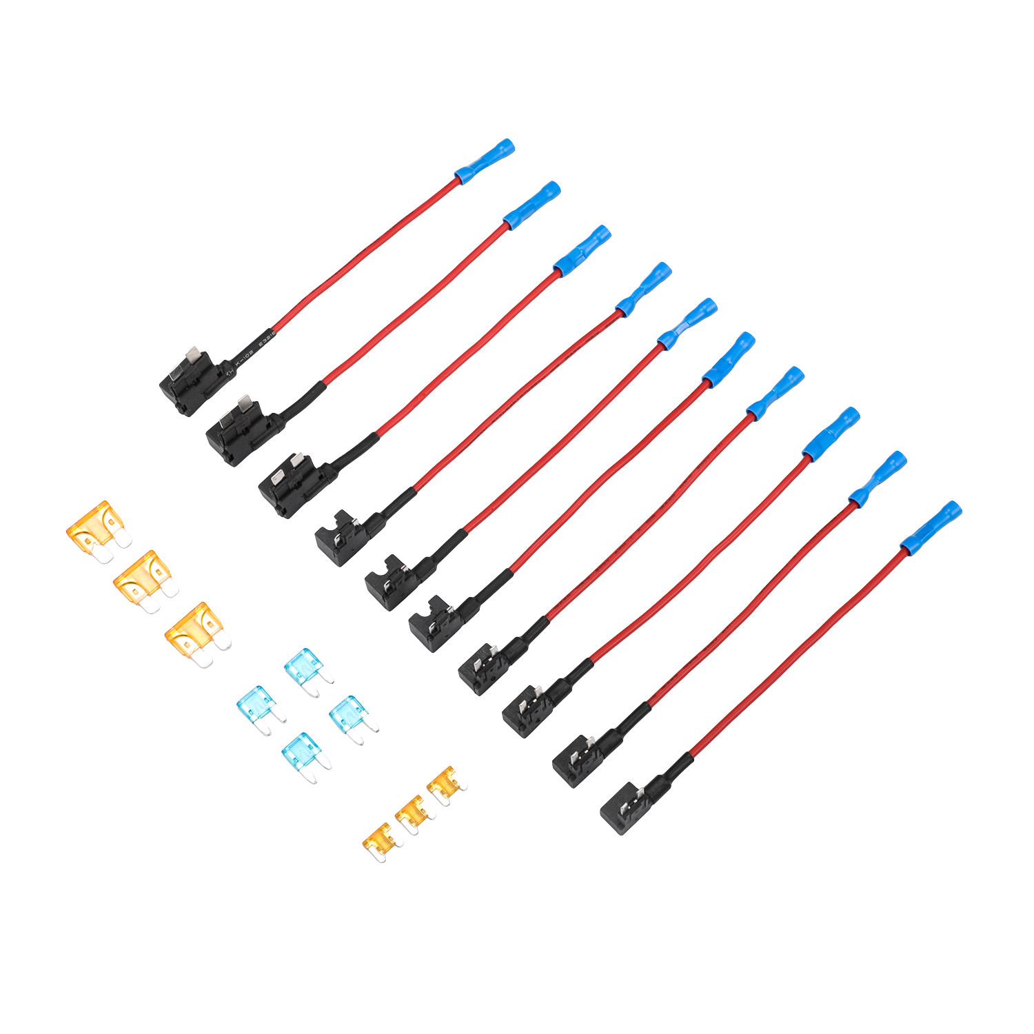 10pc 12V Car Add-a-Circuit Fuse Adapter w/ Standard Mini TAP Blade Fuse Holder