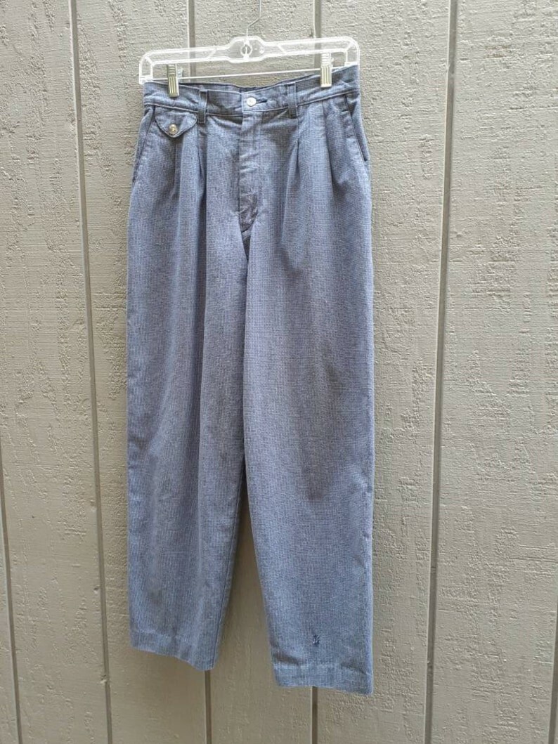 как выглядит Vtg 90s Lee Pleated Pants 27 x 27 High Rise Navy Blue Check Pattern 8 Cotton фото