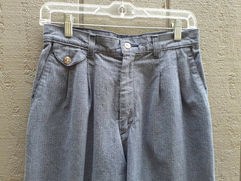 Vtg 90s Lee Pleated Pants 27 x 27 High Rise Navy Blue Check Pattern 8 Cotton