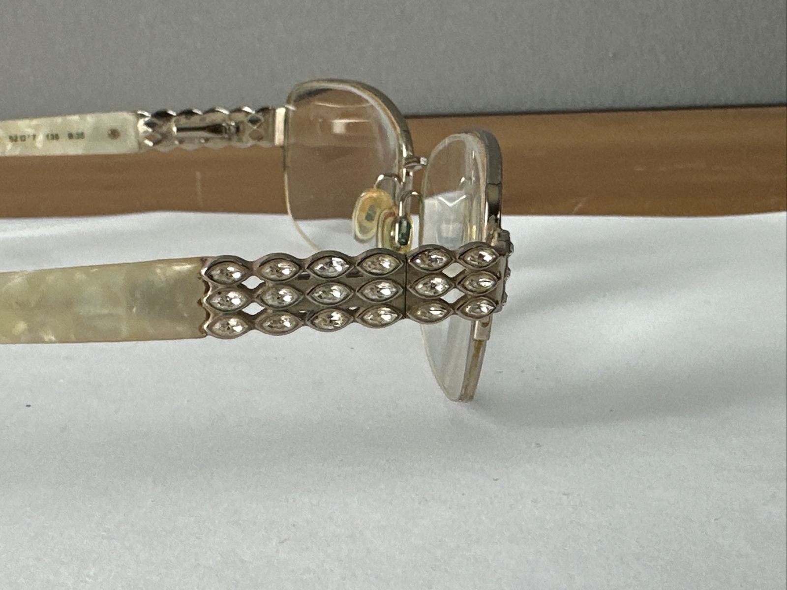 Vintage Tura Eyeglasses Pearl Frame Crystal Studs 52 17 135