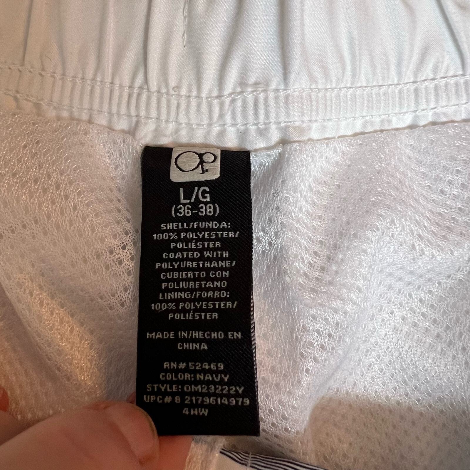 как выглядит OP men s lined swim trunks navy white yellow size L 36/38 фото