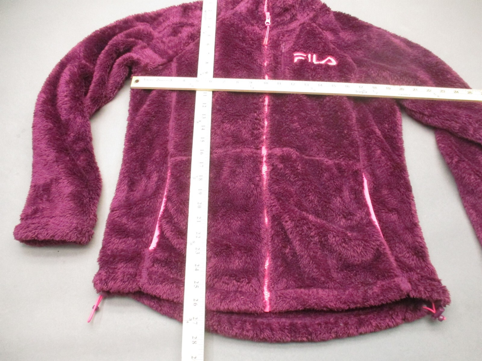 как выглядит FILA Size L Womens Burgundy Full Zip Stand Collar Hi-Pile Athletic Jacket 847 фото