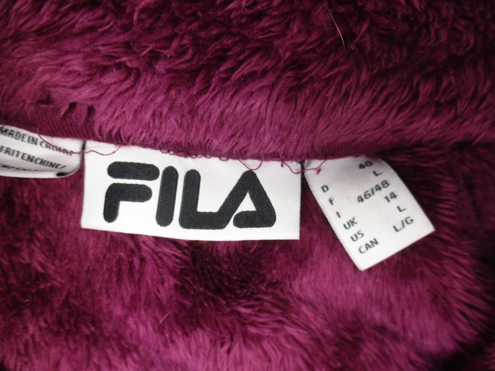 FILA Size L Womens Burgundy Full Zip Stand Collar Hi-Pile Athletic Jacket 847