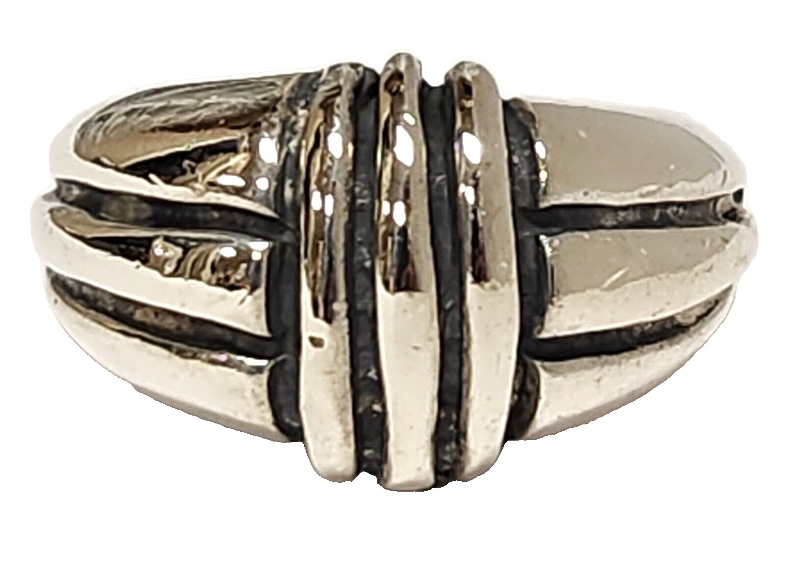 Vintage Modernist 925 Sterling Silver Ribbed Ring US Size 9 / 9.70 grams