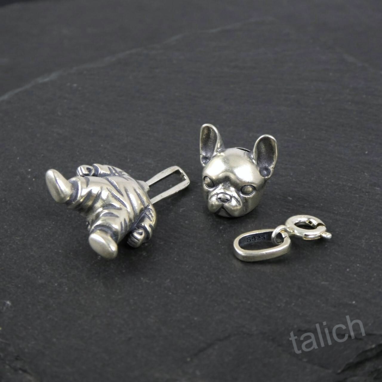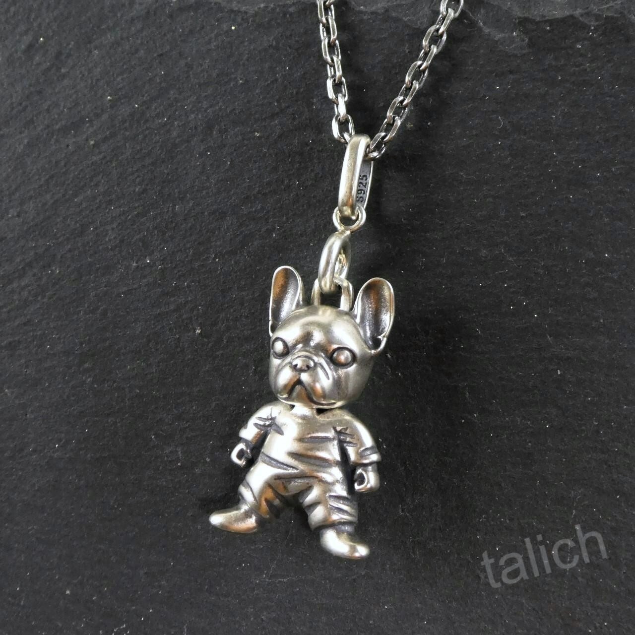 как выглядит 925 Sterling Silver French Bulldog Figure Pendant Unique Whimsical FUN фото