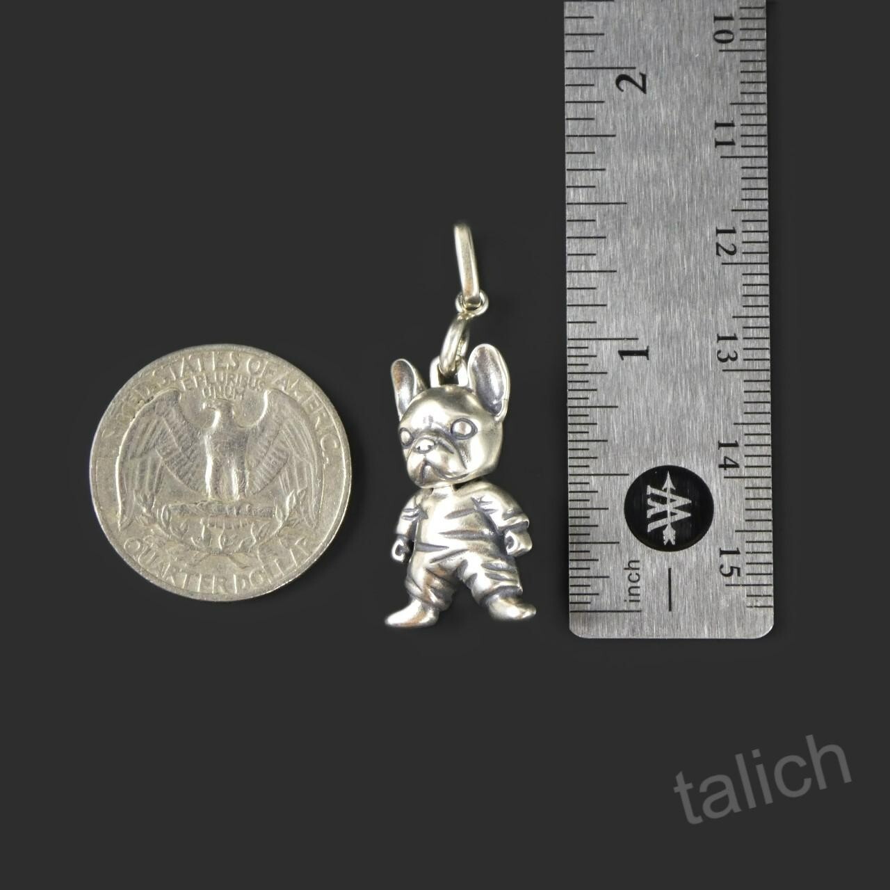 925 Sterling Silver French Bulldog Figure Pendant Unique Whimsical FUN