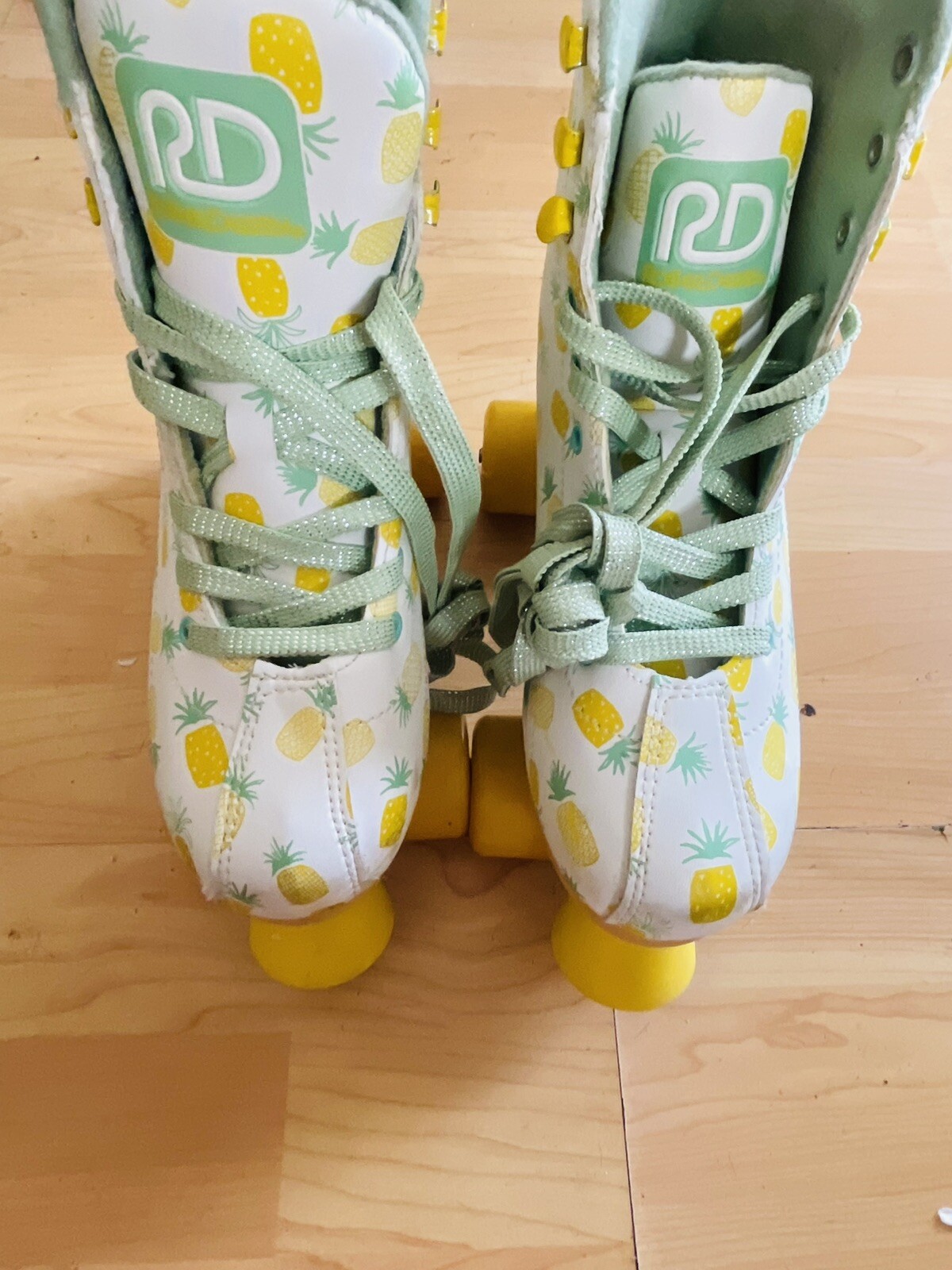 ROLLER DERBY Candi Grl Lucy White Yellow Pineapple Roller Skates Sz 3-6 Youth