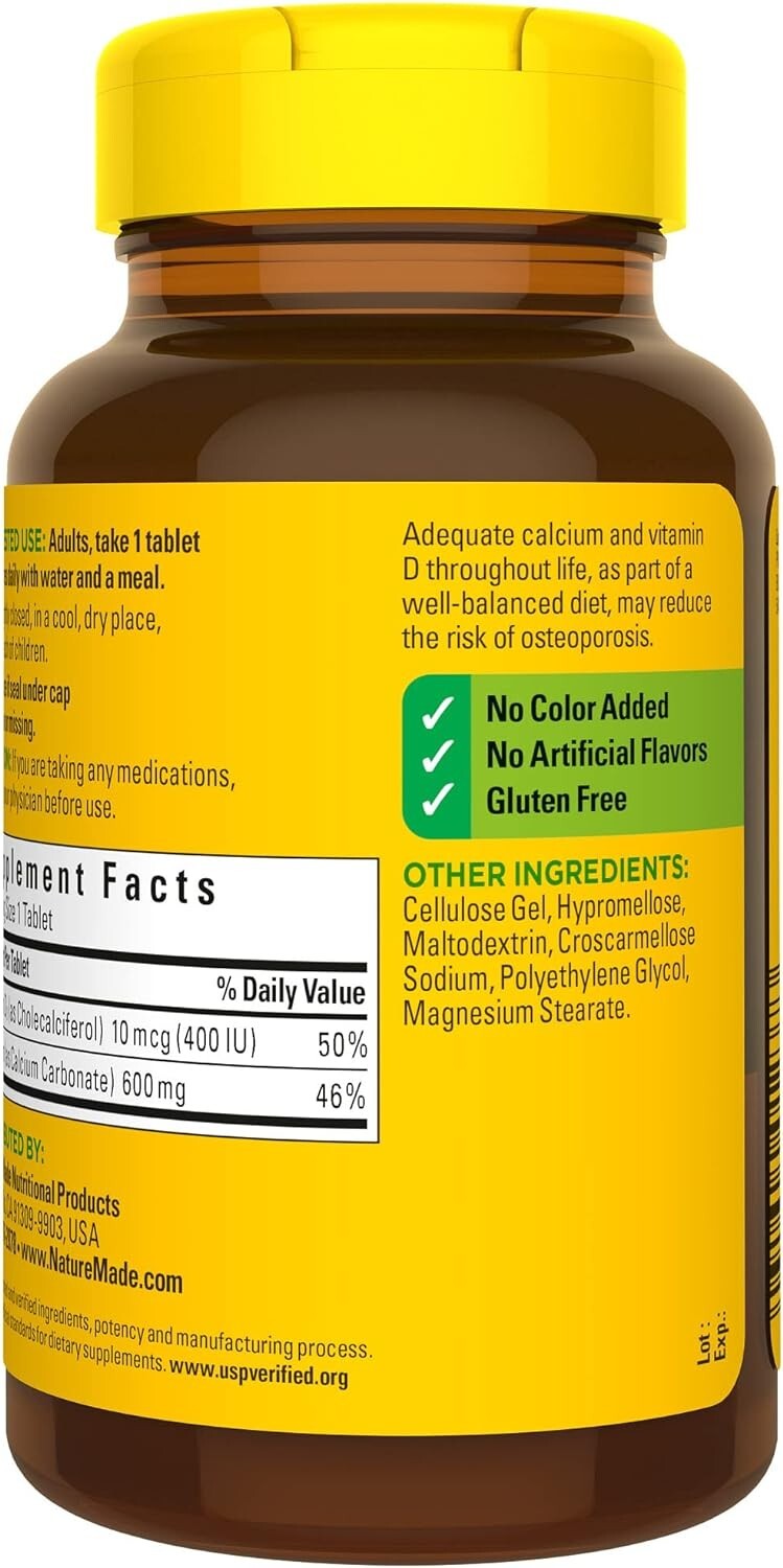 Nature Made Calcium 600 mg with Vitamin D3 for Immune Support Exp. 11/2026