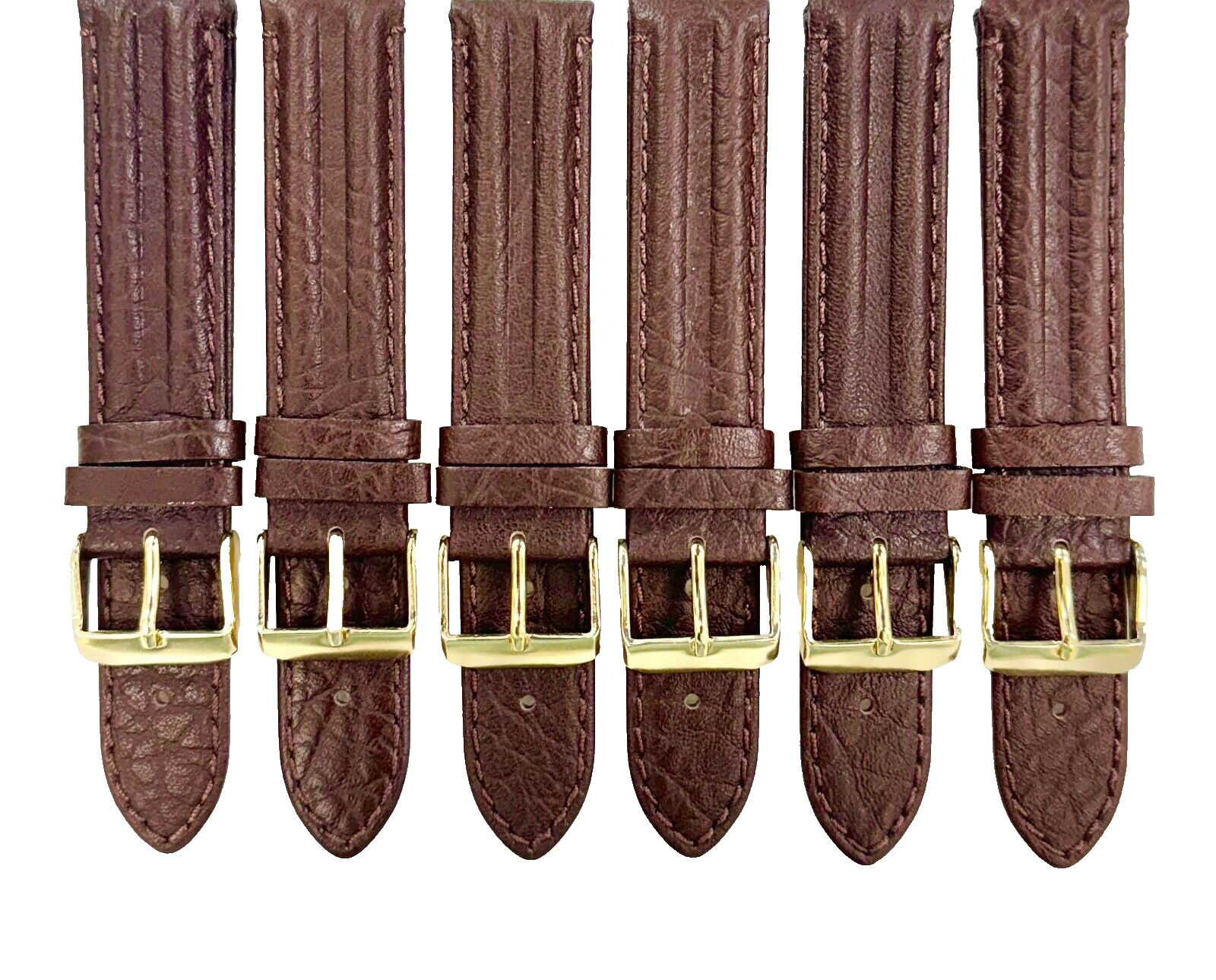 Lot of 6 Watch Bands D.Brown Genuine Leather,Padded Stitched 18x18mm
