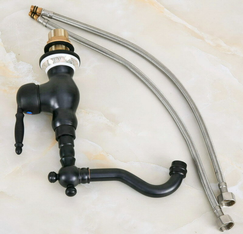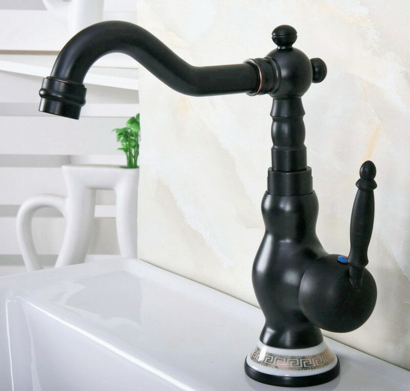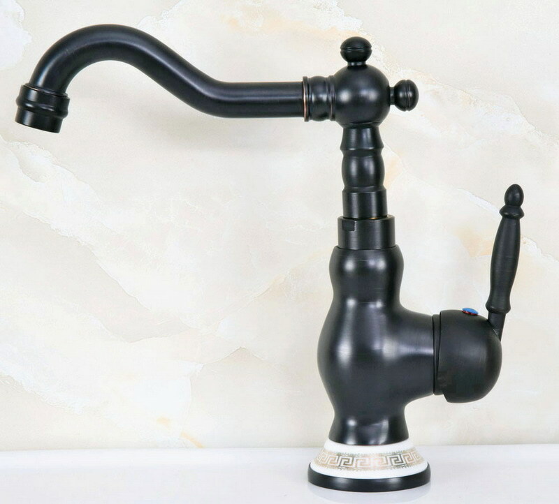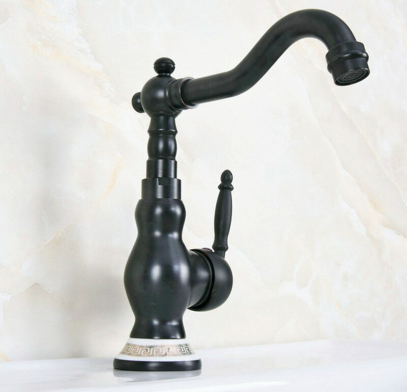 Black Brass Bathroom Basin Faucet Swivel Spout Deck Mounted Sink Mixer Tap