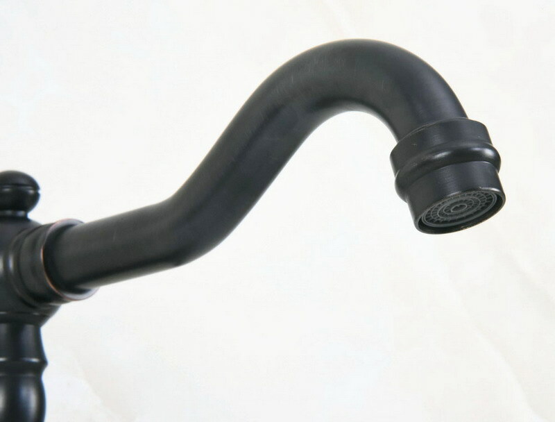 как выглядит Black Brass Bathroom Basin Faucet Swivel Spout Deck Mounted Sink Mixer Tap фото