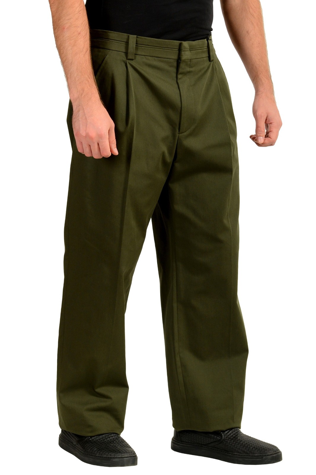 Scuderia Ferrari Men's Olive Green Pleated Front Casual Chino Pants US 32 IT 48