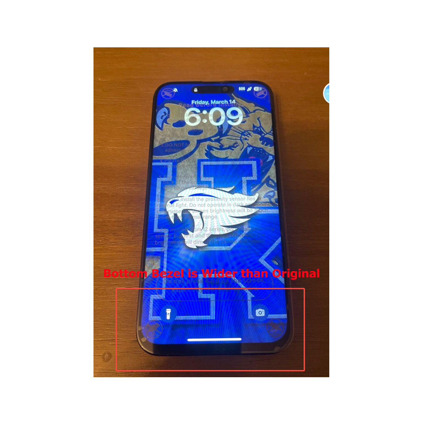 Note: The bottom bezel is wider than original