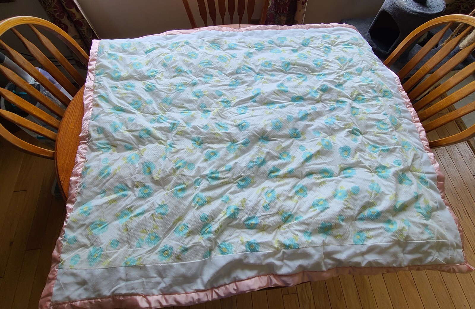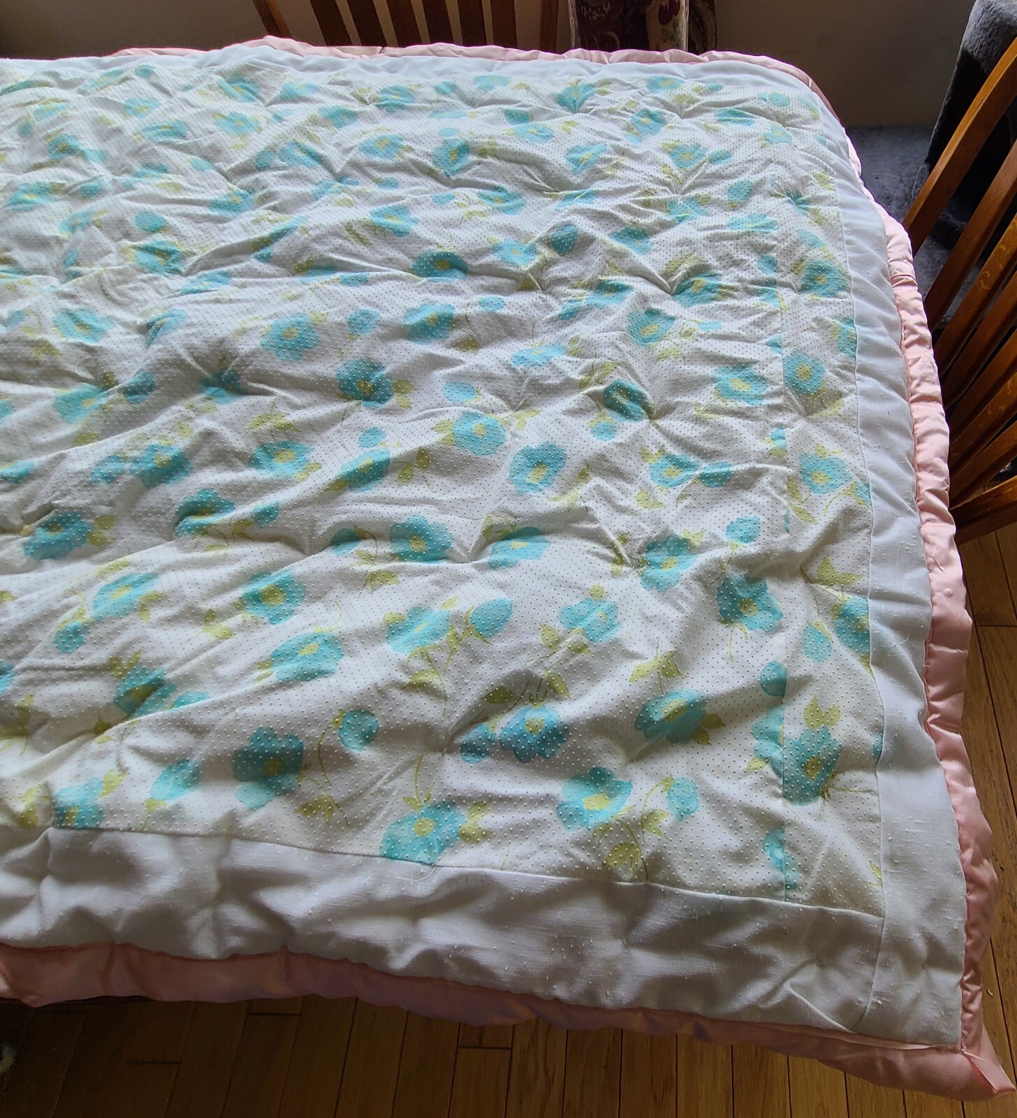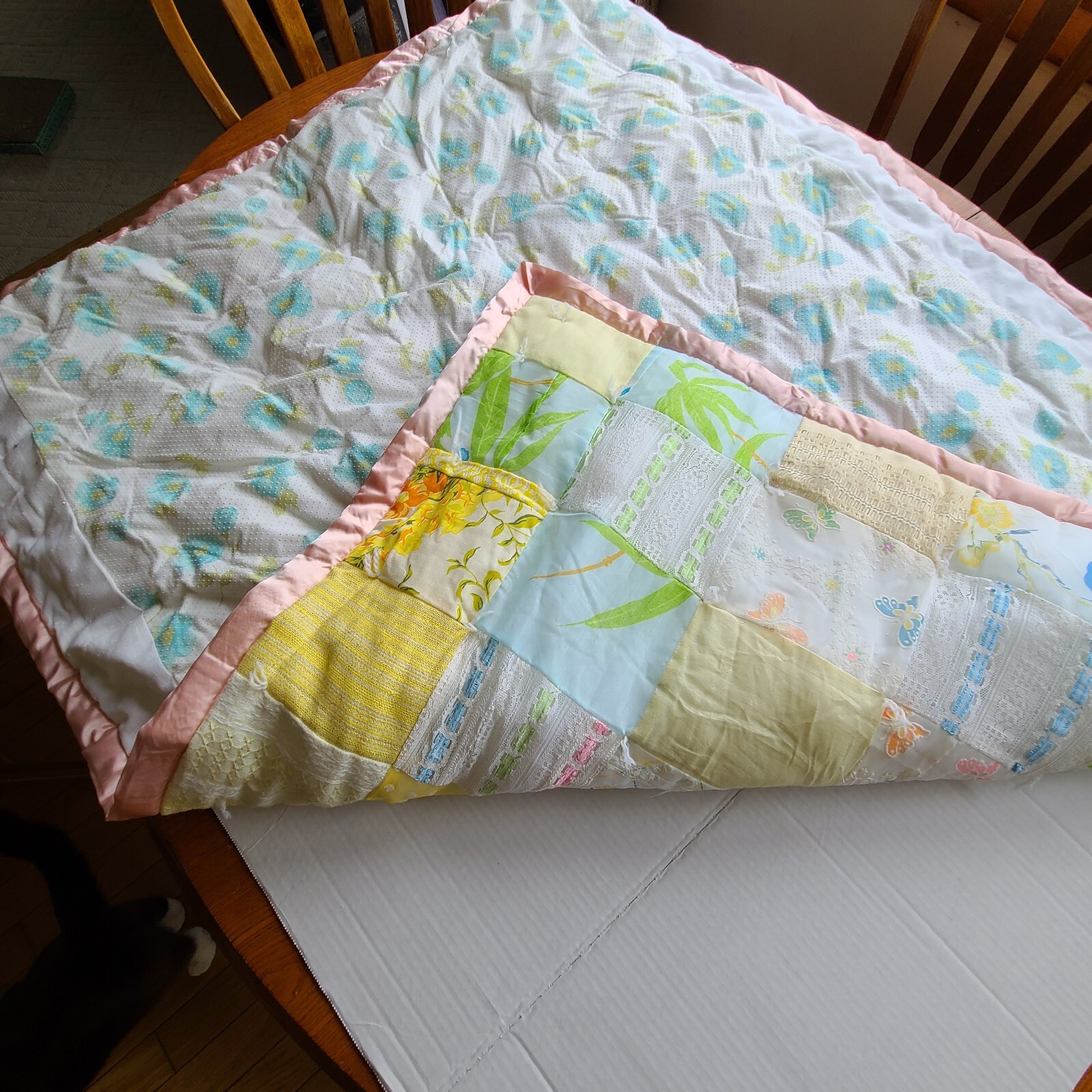 как выглядит vintage patchwork quilt Baby Crib Satin Trim Tied Blanket Thick Nursery фото