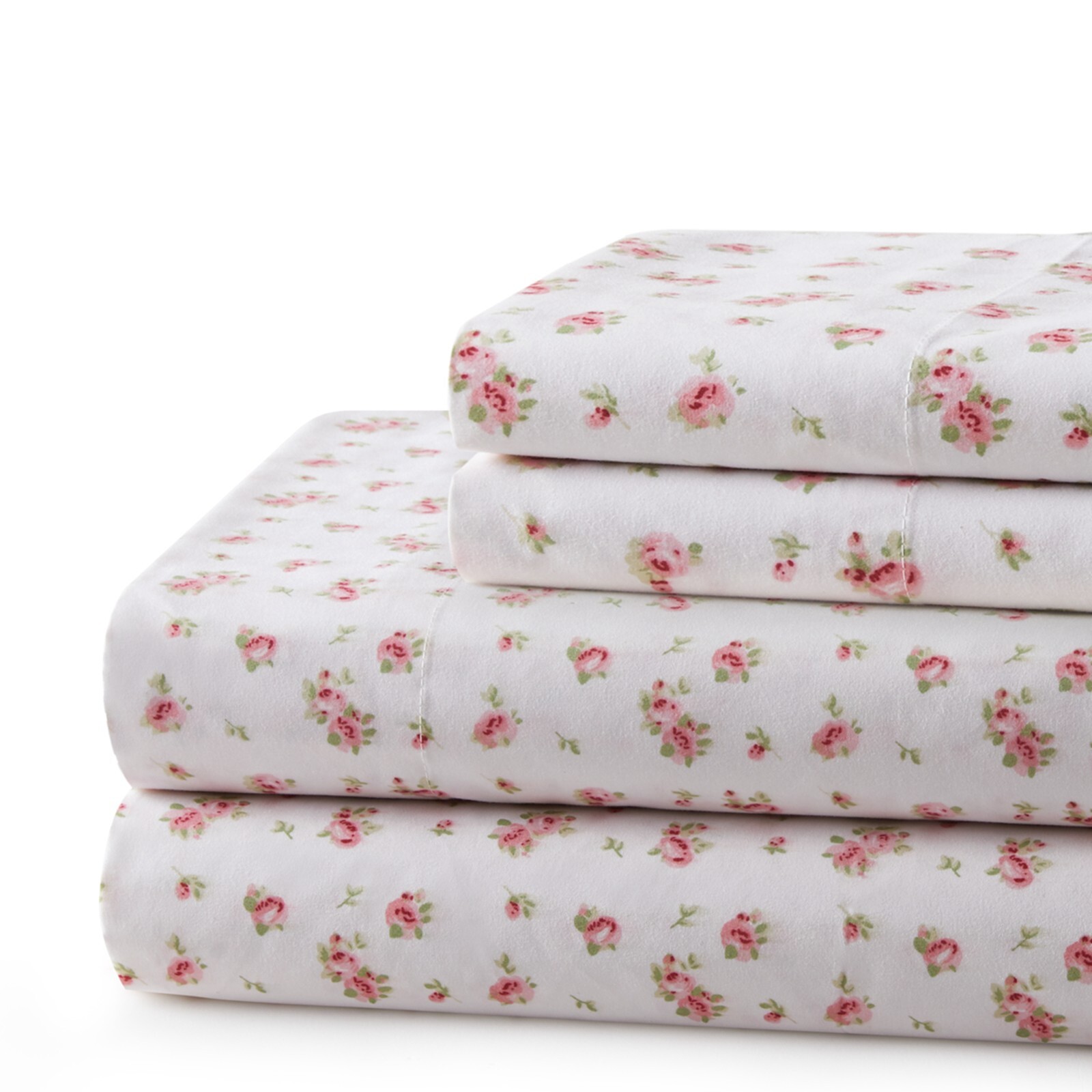 Printed 600 Thread Count Soft Cotton Blend Percale Sheet Set, Pink Rose Floral