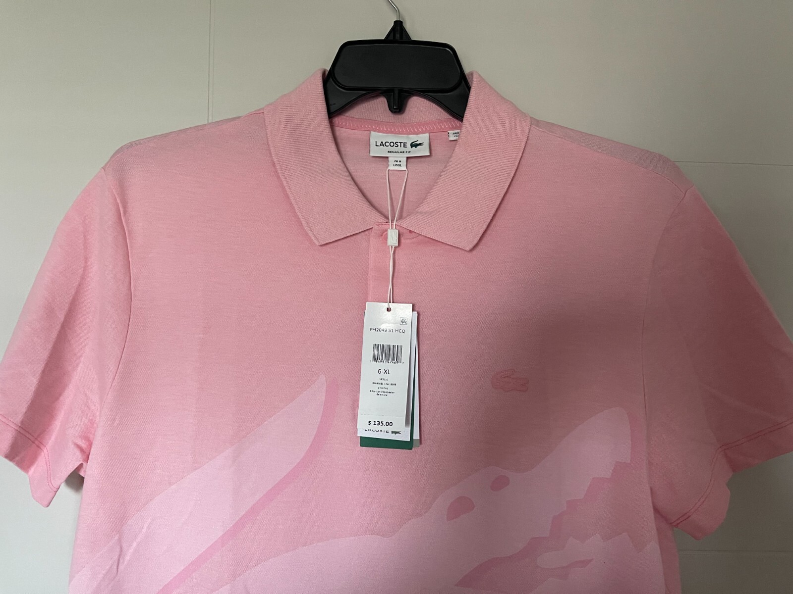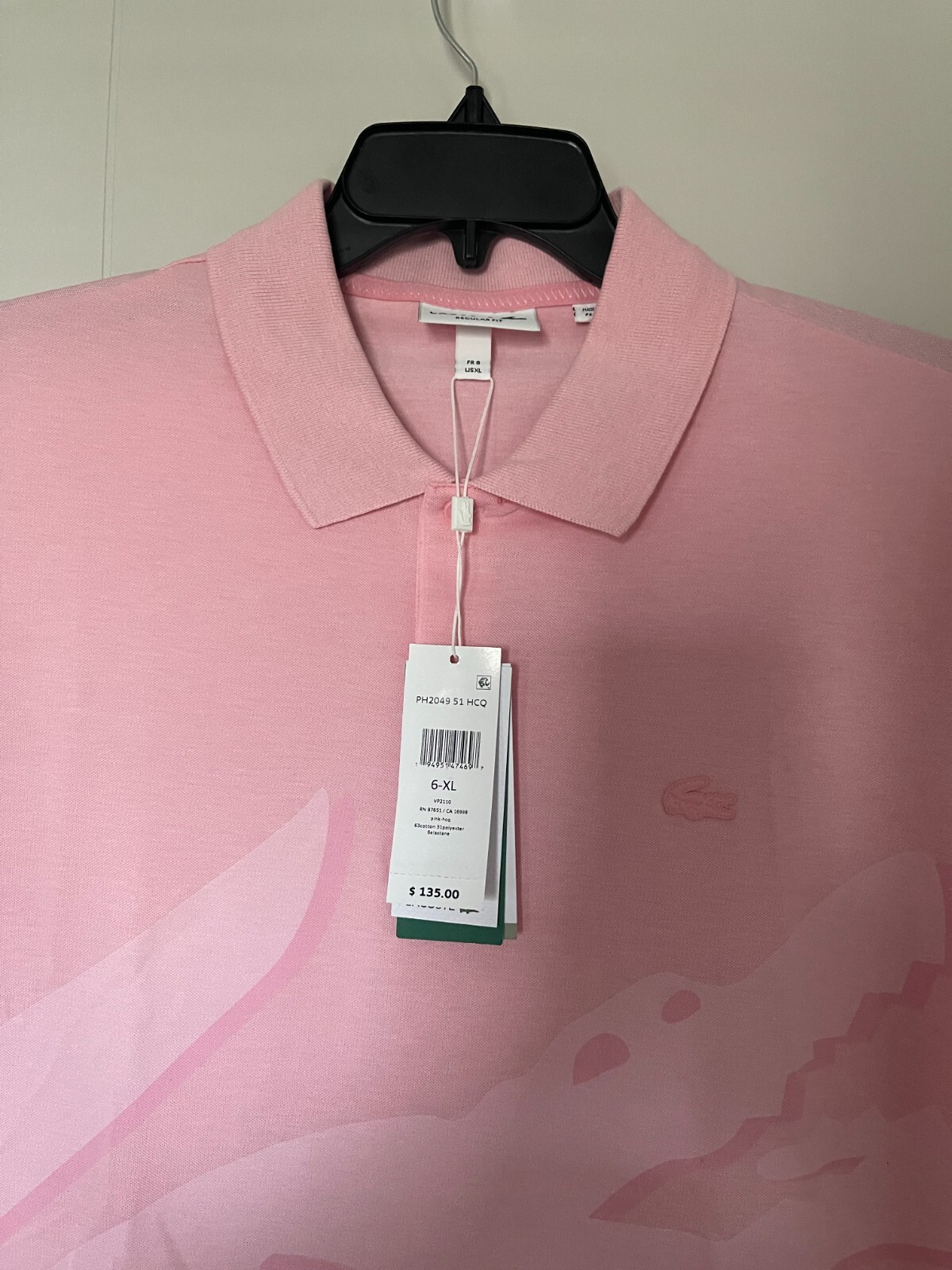 NWT LACOSTE LOGO MEN'S REGULAR FIT POLO SHIRT COTTON BLEND PINK 135 US XL/FR 6