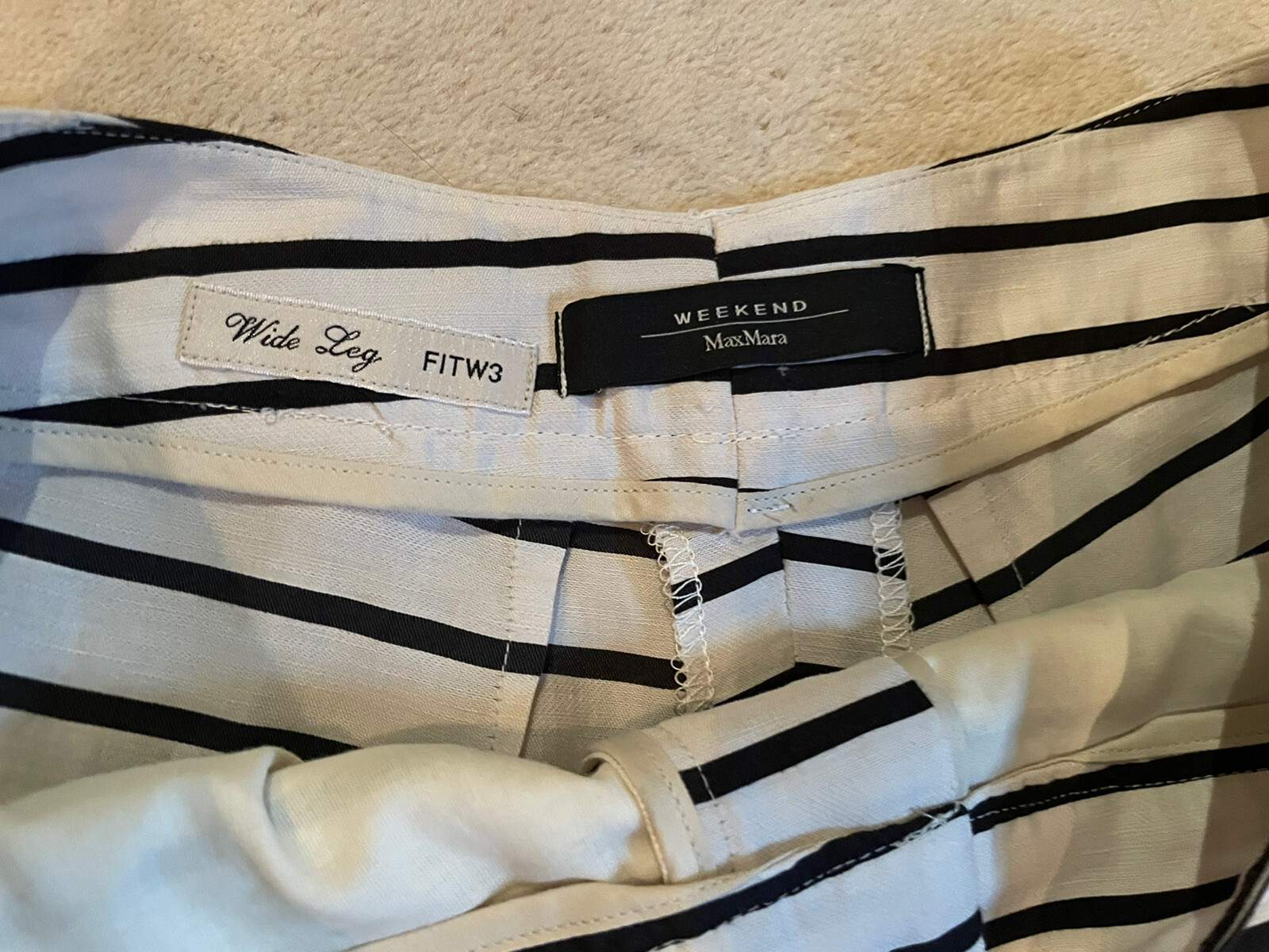 как выглядит WEEKEND MAXMARA Wide Leg Striped Pants Blue/Ivory S фото