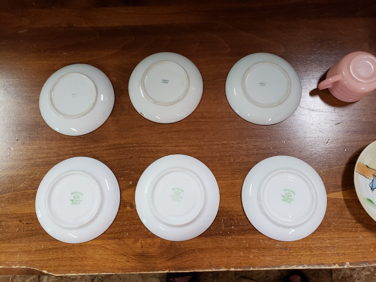 как выглядит Vintage Meito Small Plates White Gold Rim, Creamer, Pink Sugar Lot of 13 фото